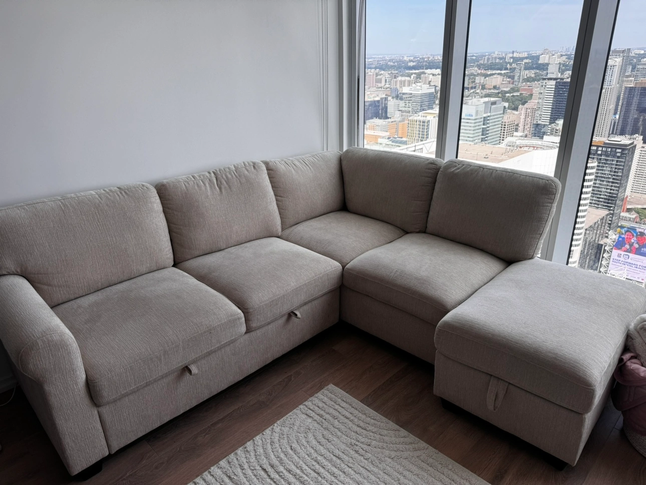 Beige Sectional Sofa with Chaise