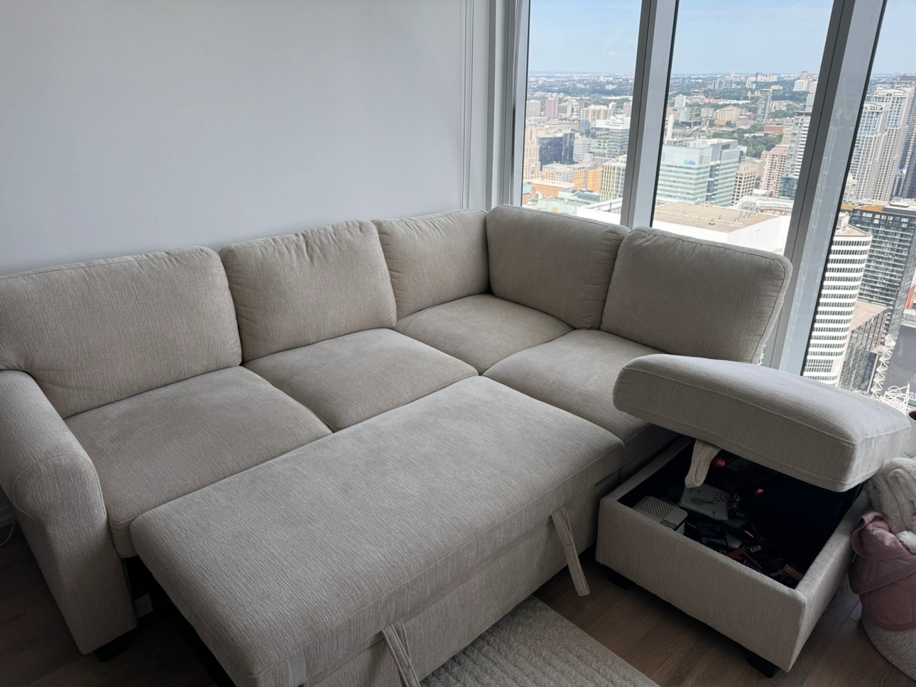 Grey Sectional Sofa Bed with Storage