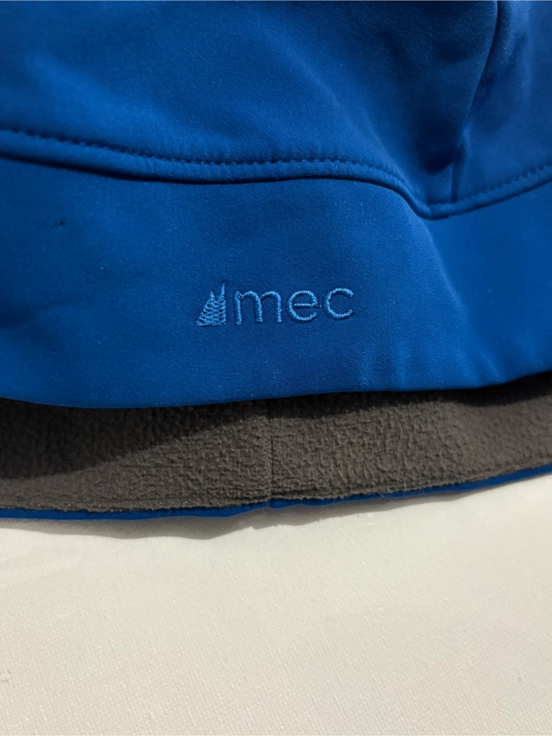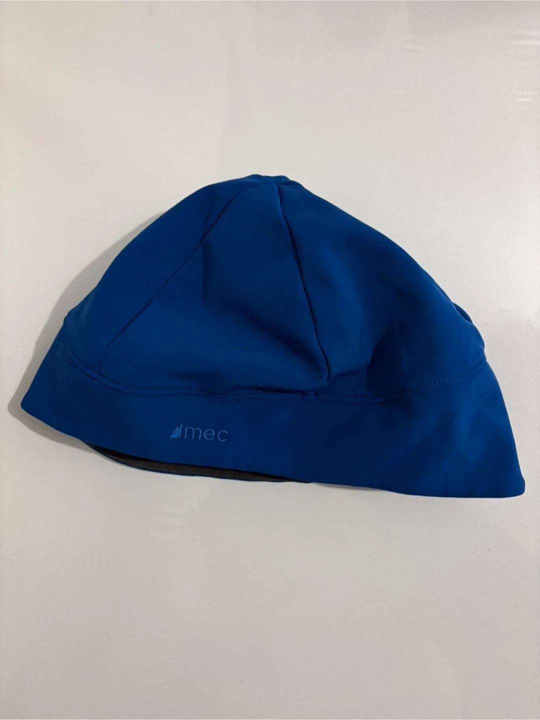 This MEC beanie is a vibrant blue and features a soft fleece lining for added warmth. It's designed for comfort during cooler weather activities. Keeps your head toasty!