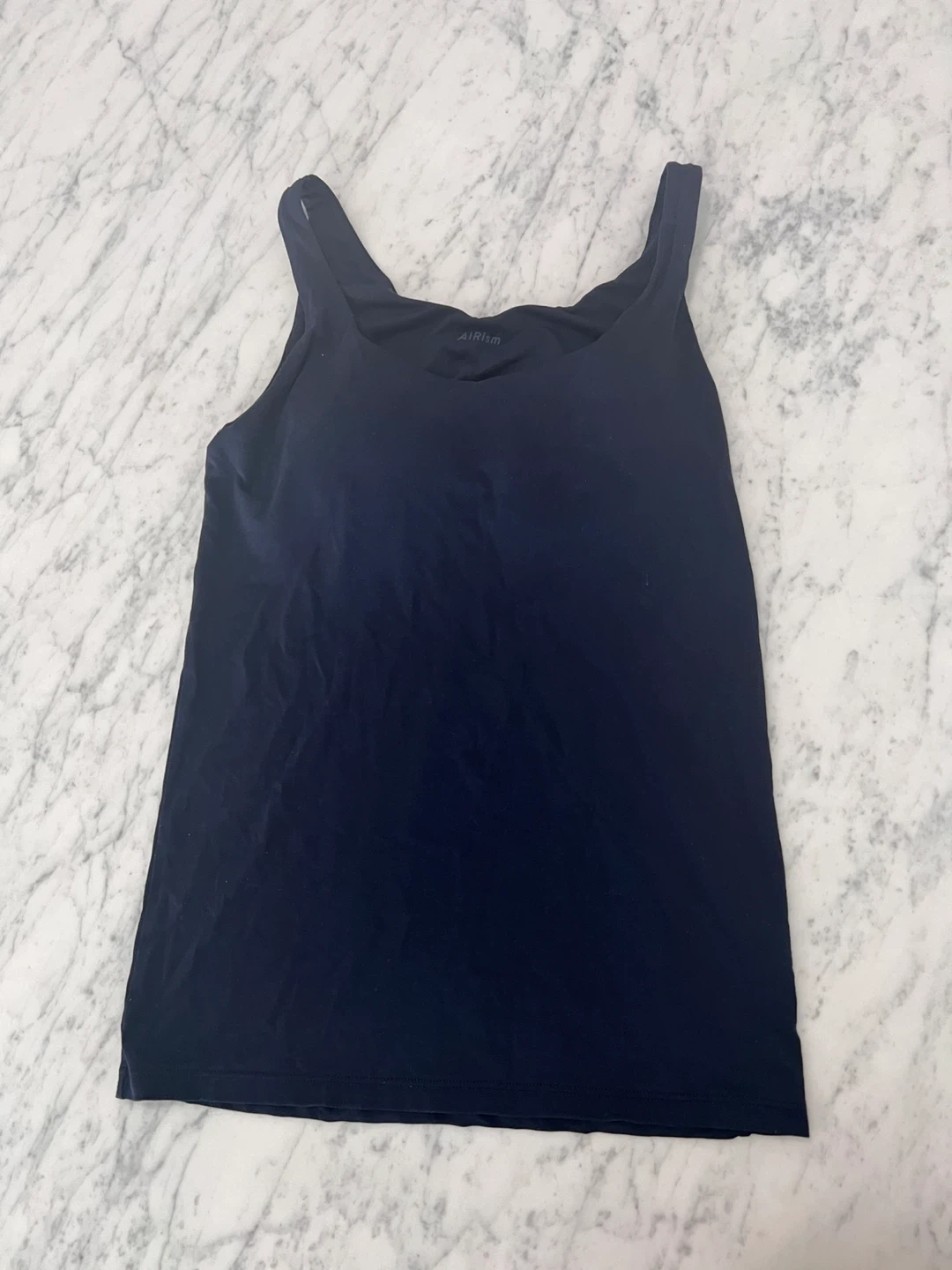 This is a navy UNIQLO AIRism bra sleeveless top in size S. It's made from a lightweight, breathable material designed for comfort. Great for layering or wearing on its own during warm weather.
