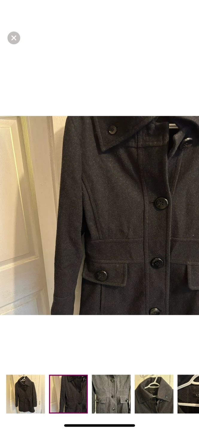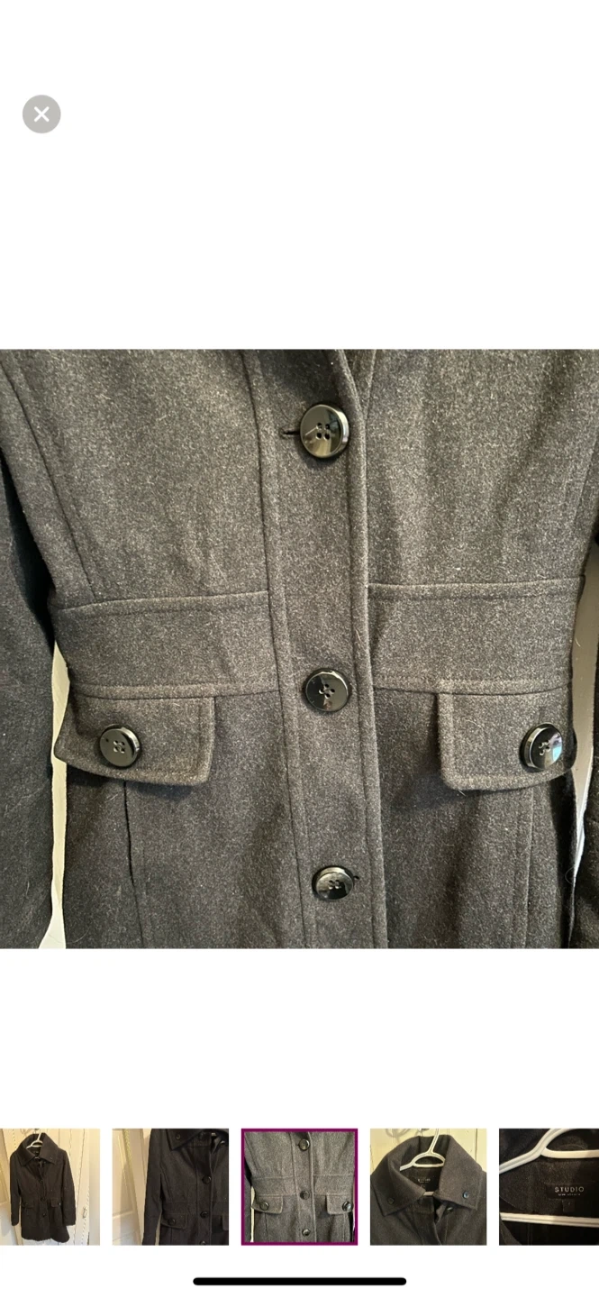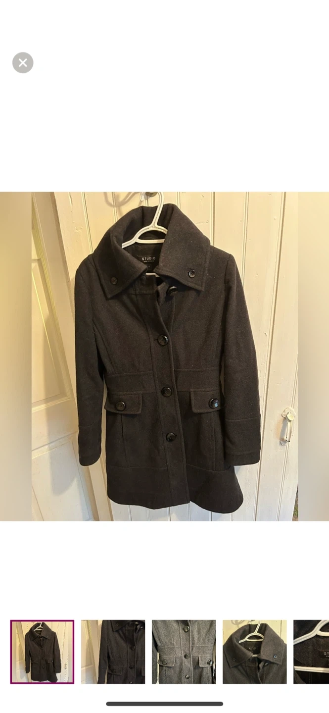 12Studio by Liz Claiborne brand. Button up felt pea coat. Black in colour. Size women’s 4. Brand new condition $25 Pickup between kincardine & ripley or I can arrange delivery in port Elgin-Owen sound, walkerton-Durham, wingham-listowel-kw/cambridge, goderich-bayfield, Woodstock & Arthur-Orangeville-Newmarket-Lindsay-Peterborough AREAS.