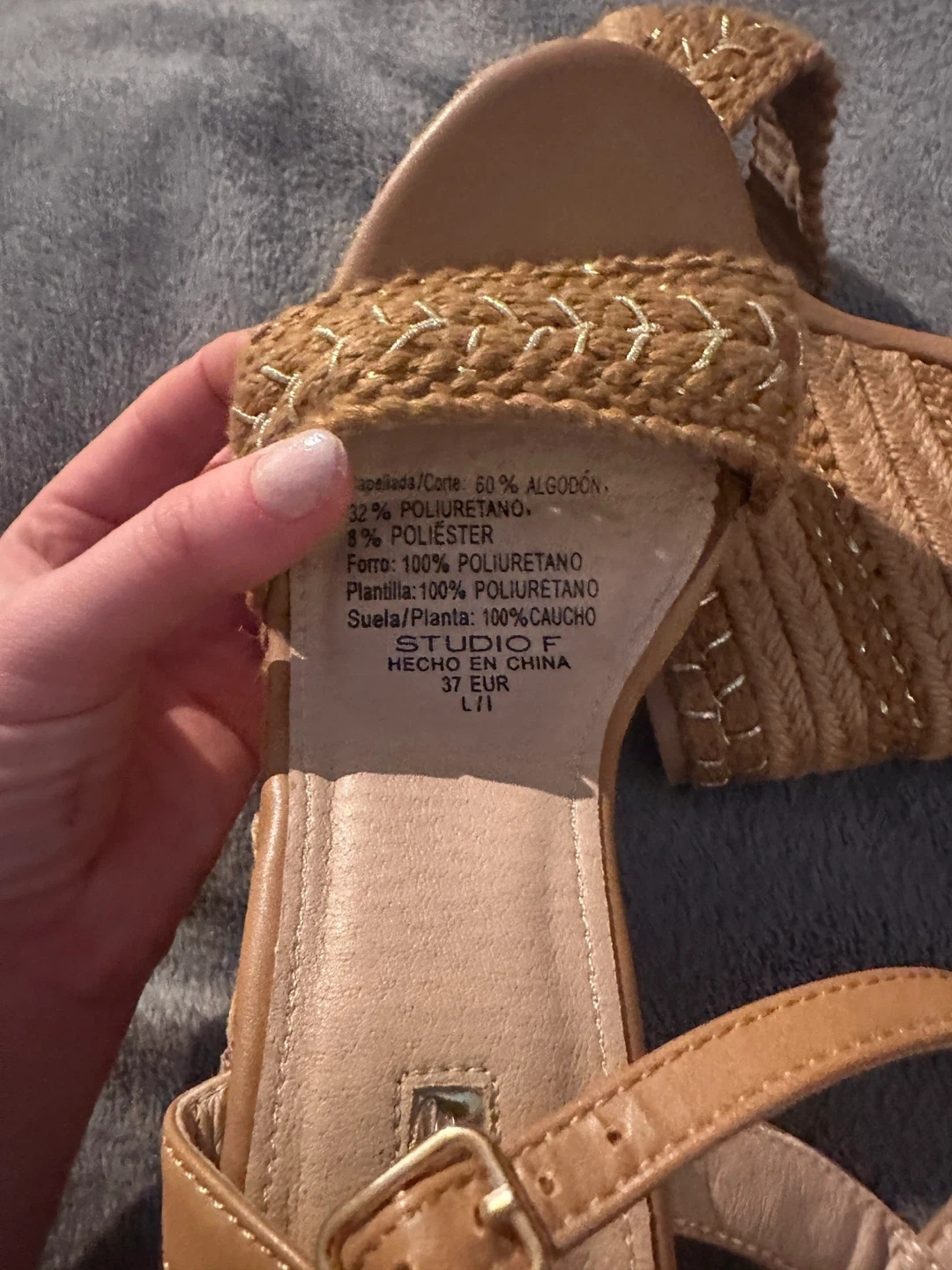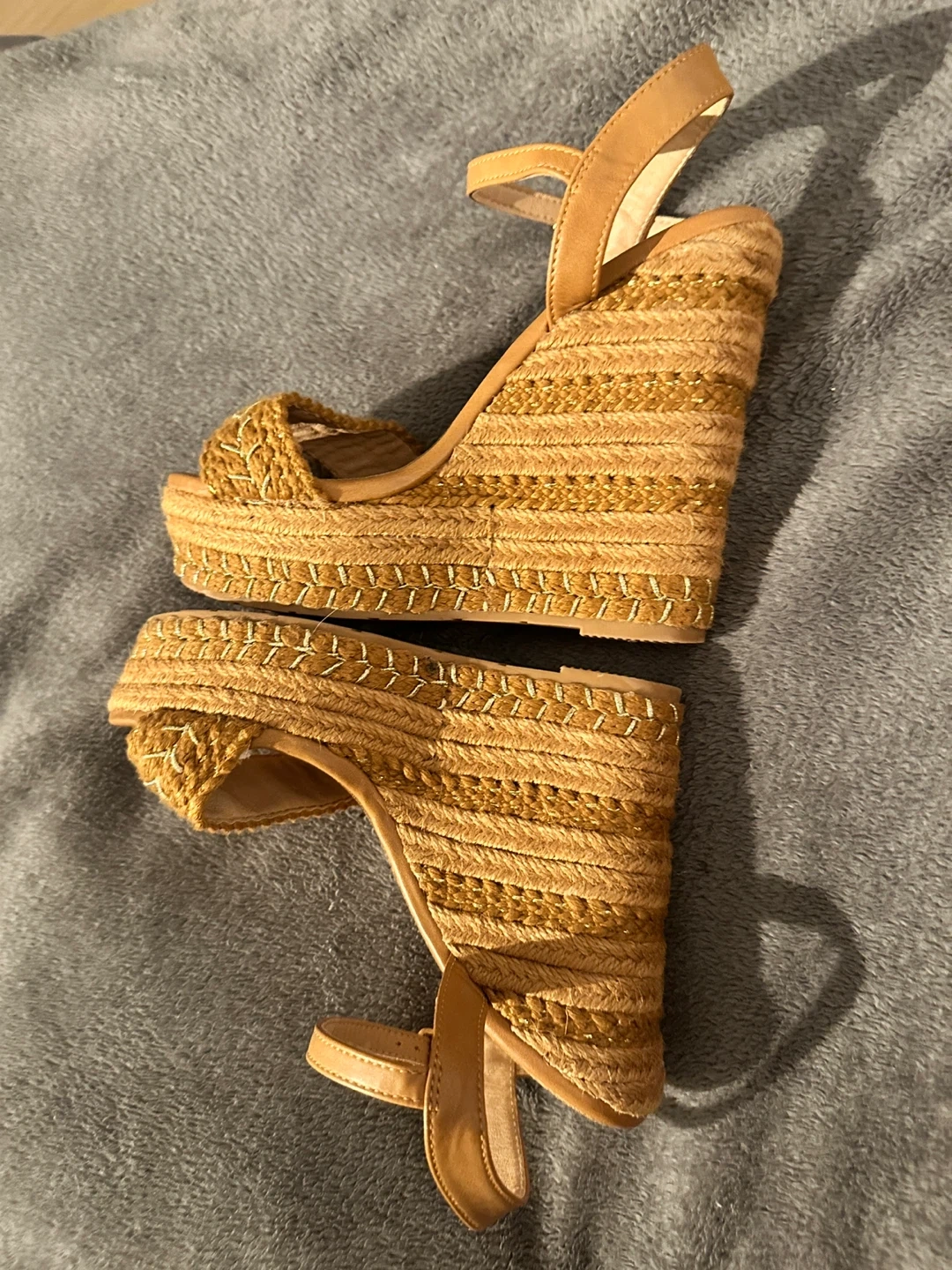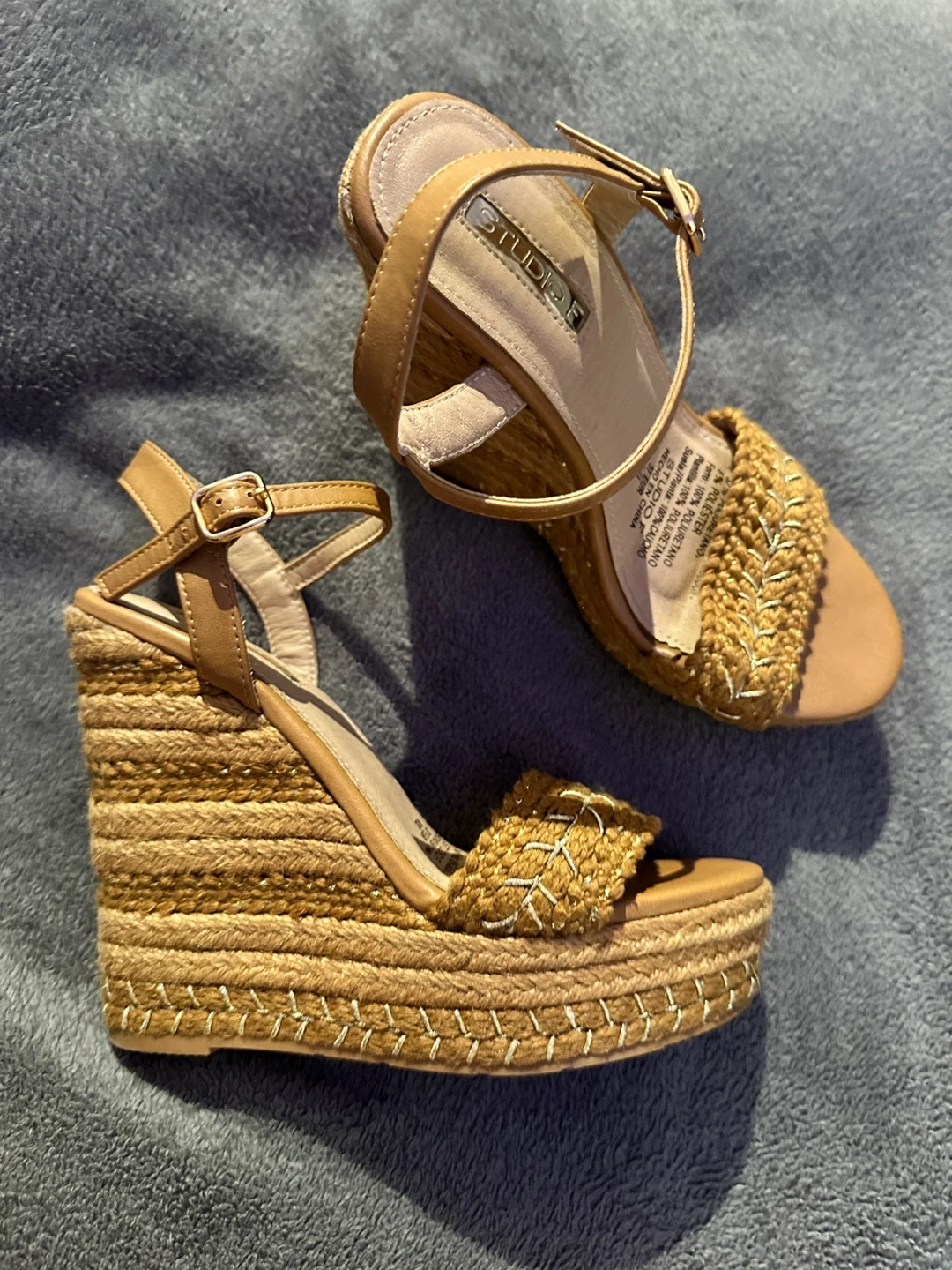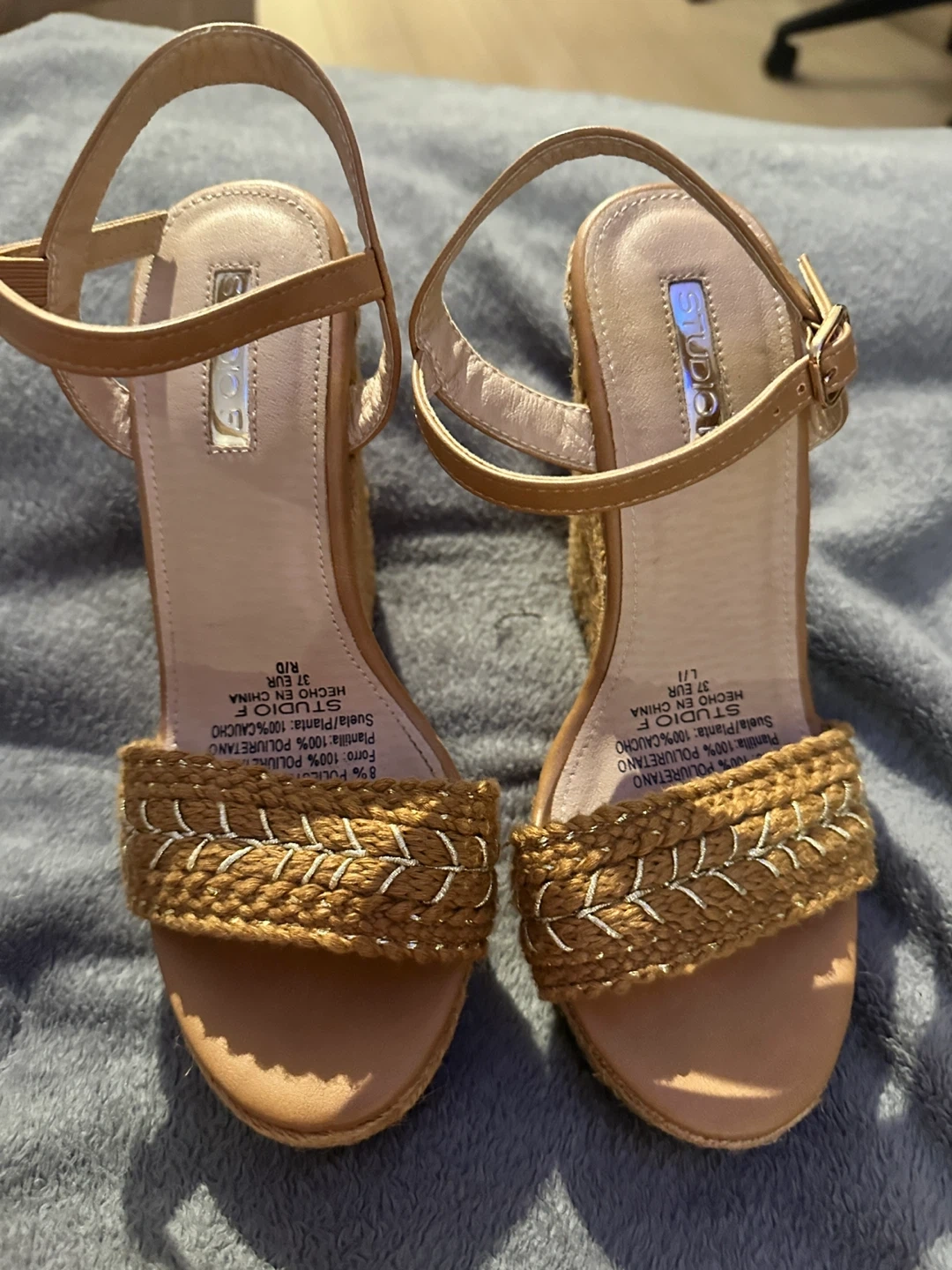 17Studio F, 4 inch wedge sandals, purchased in Colombia. Wore once so they are in great condition. They're a size 37 EUR. 7 CAD Rubber sole just too tall for me Taking offers