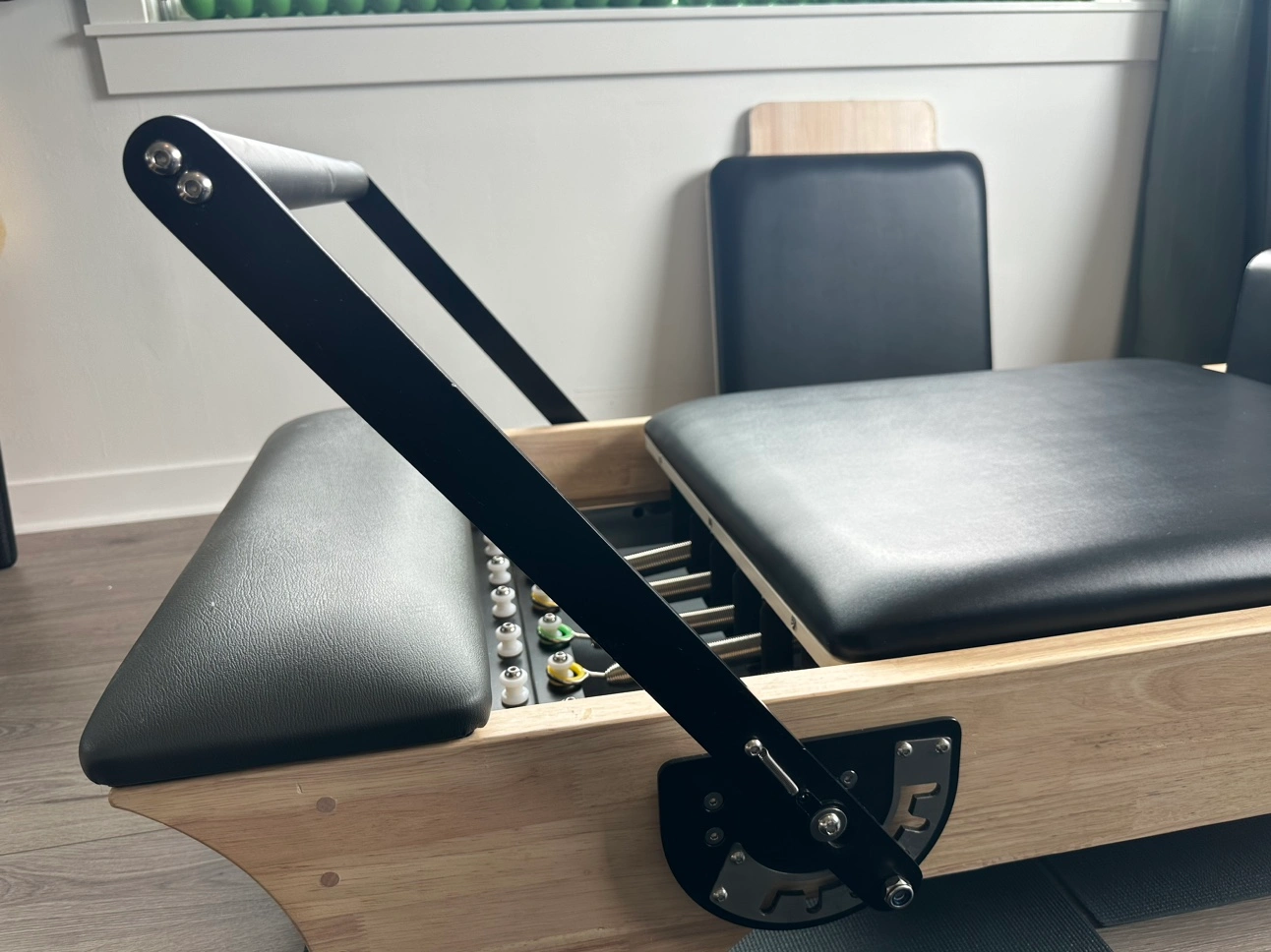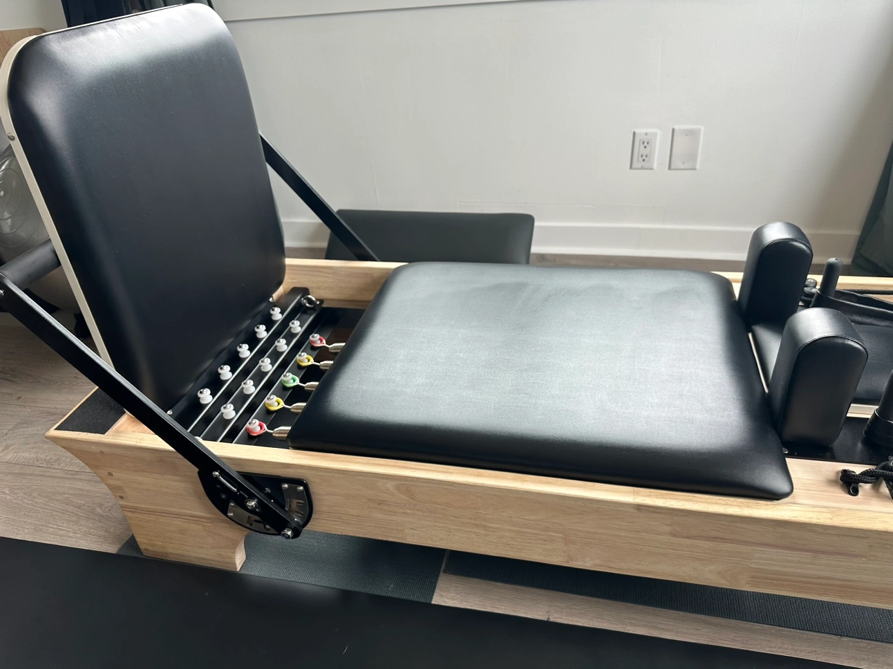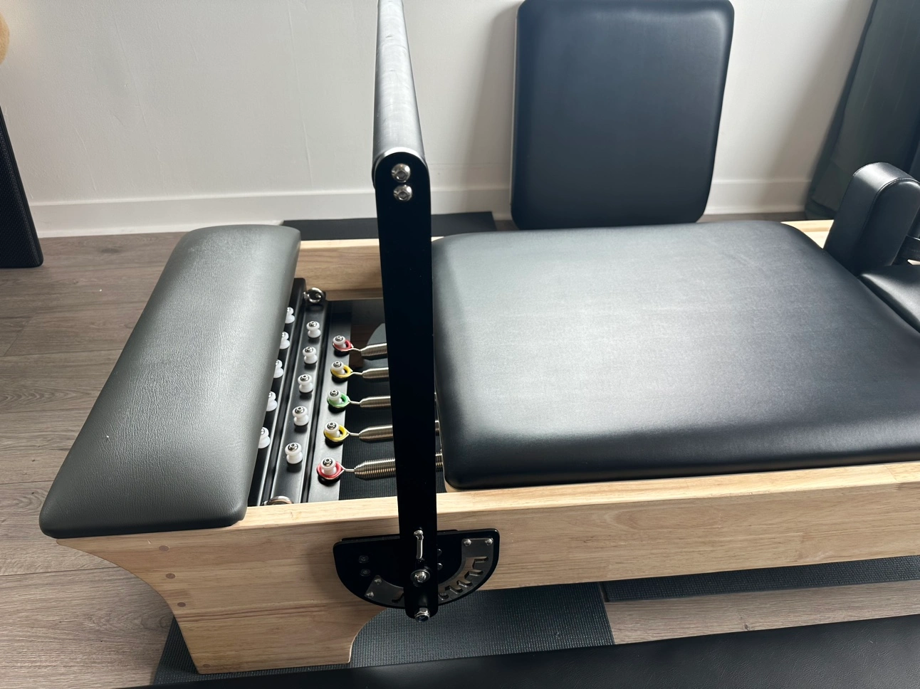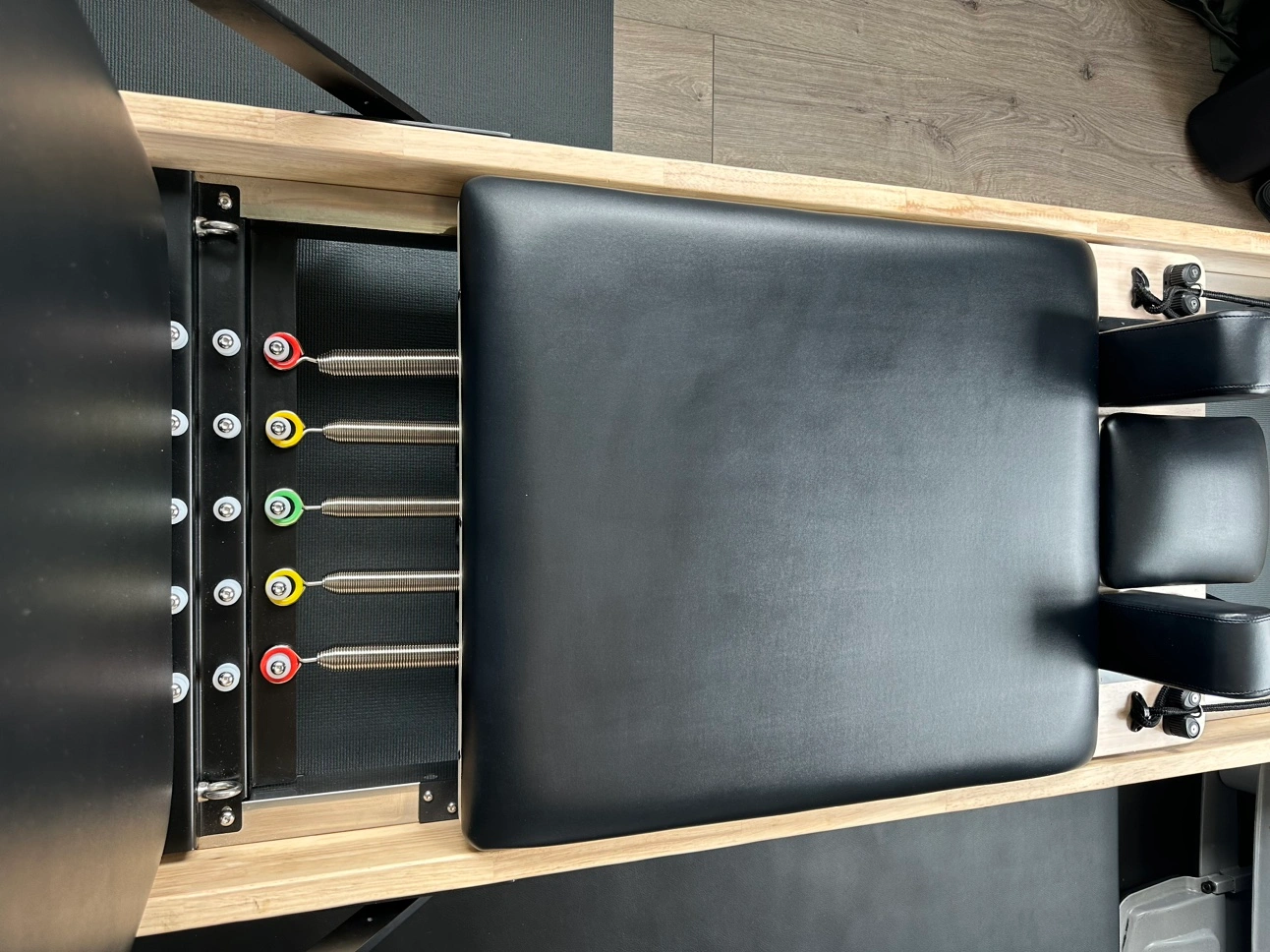 10Studio Reformer from China that has been upgraded for studio use: 5 spring system, new wheels and loops. The carriage is best for therapeutics as the cushioning is tempurpedic as well as the Jumpboard offers cushioning. Excellent for a Clinic or an individual working through rehab of a soft tissue injury