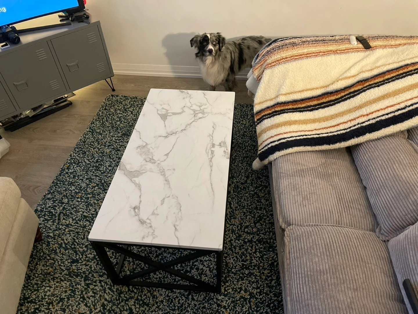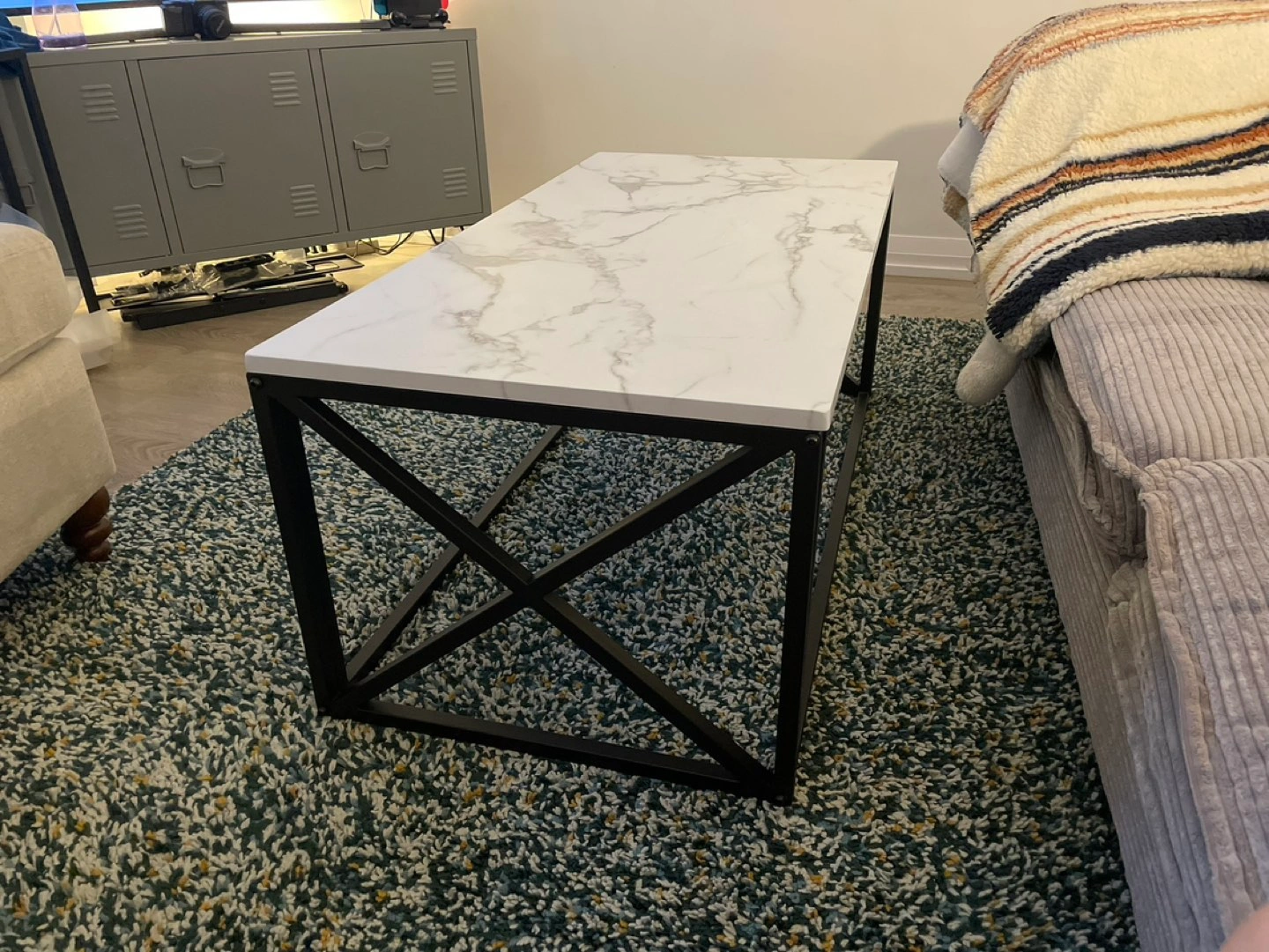 Give your home a unique-modern look with this beautiful coffee table. The contemporary design creates a great addition to any home décor. Simple in silhouette yet has a sturdy construction, this coffee table features a spacious top and will add an elegant feel to your home. It is an addition of style and functionality all in one! Like new! Dimensions in pictures. Delivery can be arranged pending distance for an additional cost. Can be disassembled upon request.