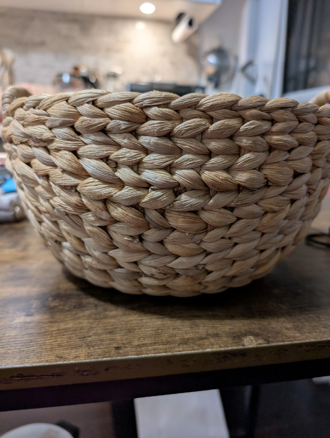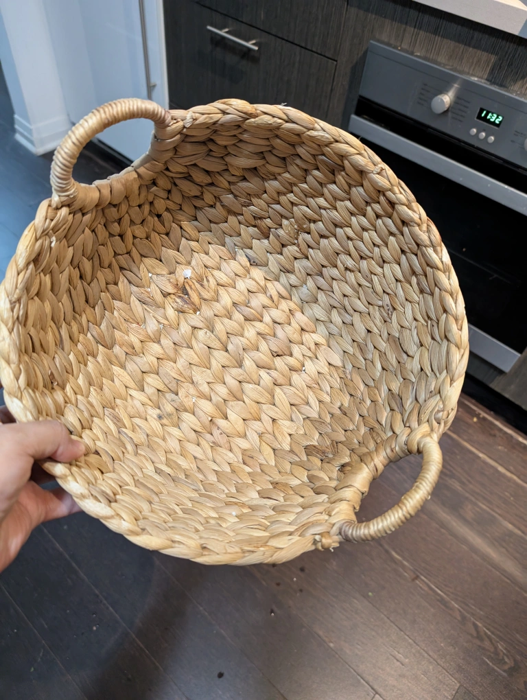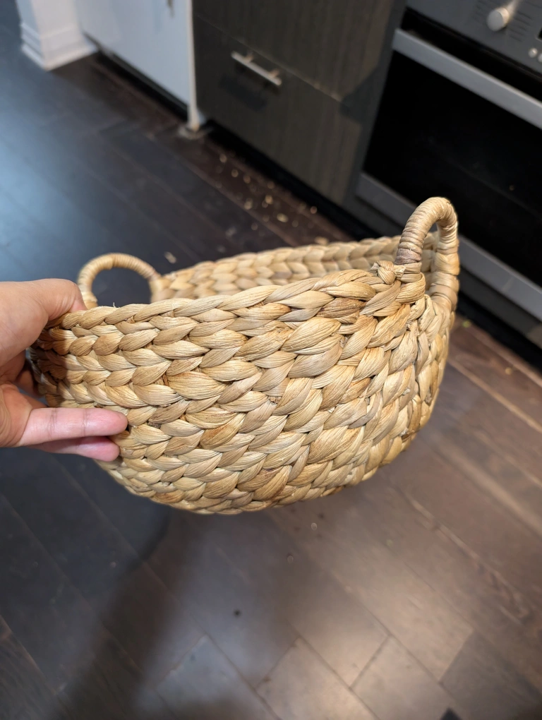 Here's a lovely woven basket with handles! It's perfect for storage or decor. This basket is in great condition and ready for a new home Very sturdy. Pick up at 60 John Street @ A&W near TIFF. Cash only.