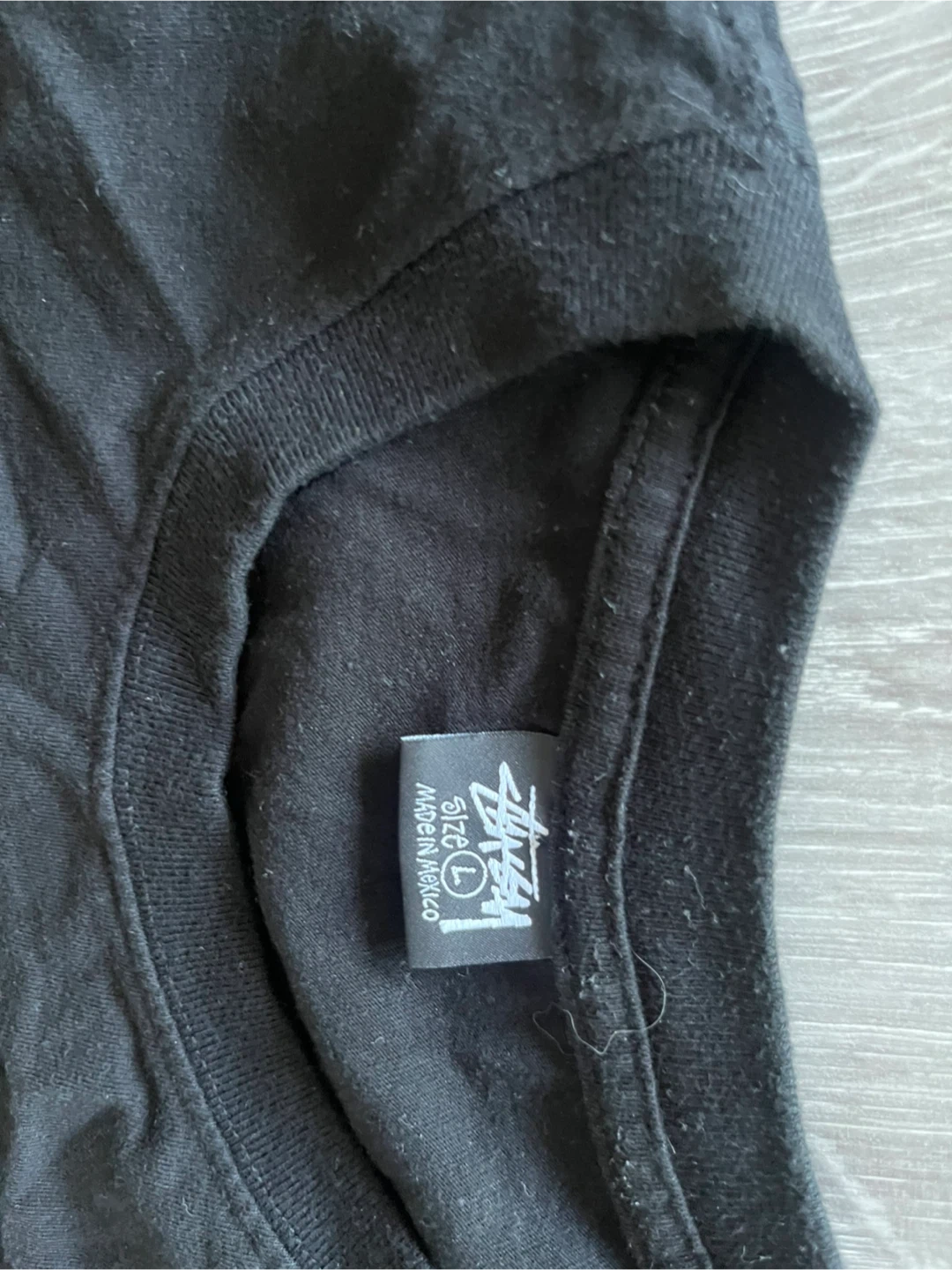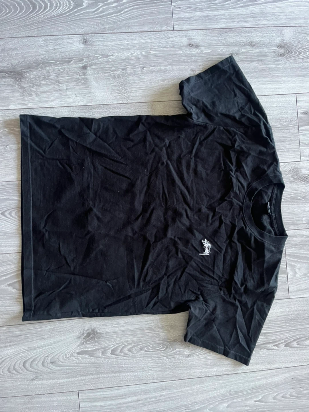 76Selling a Stussy black t-shirt in size large. It's in good condition and ready for a new home!