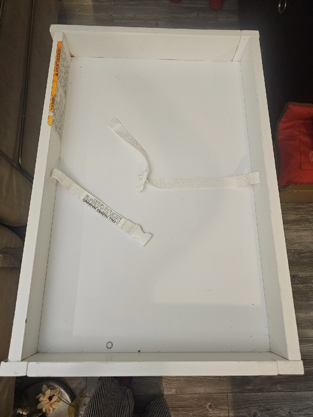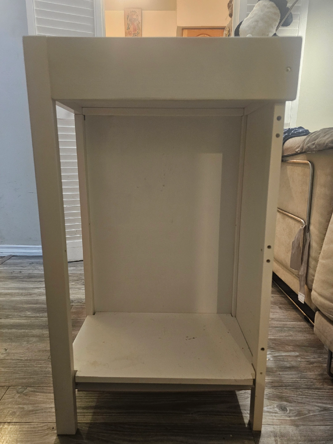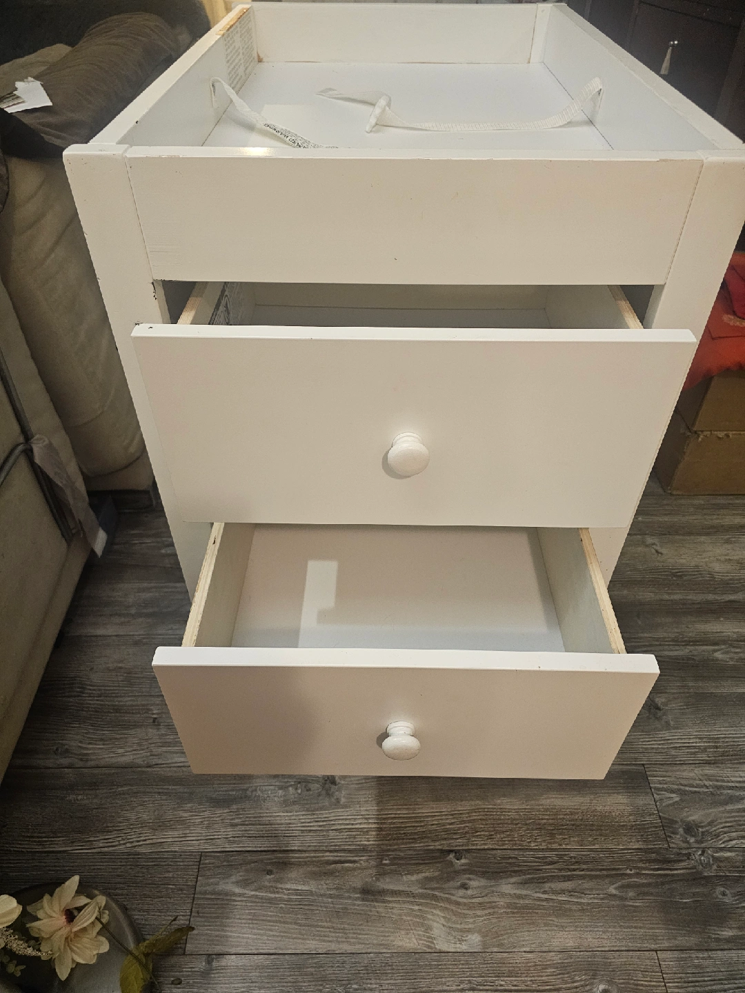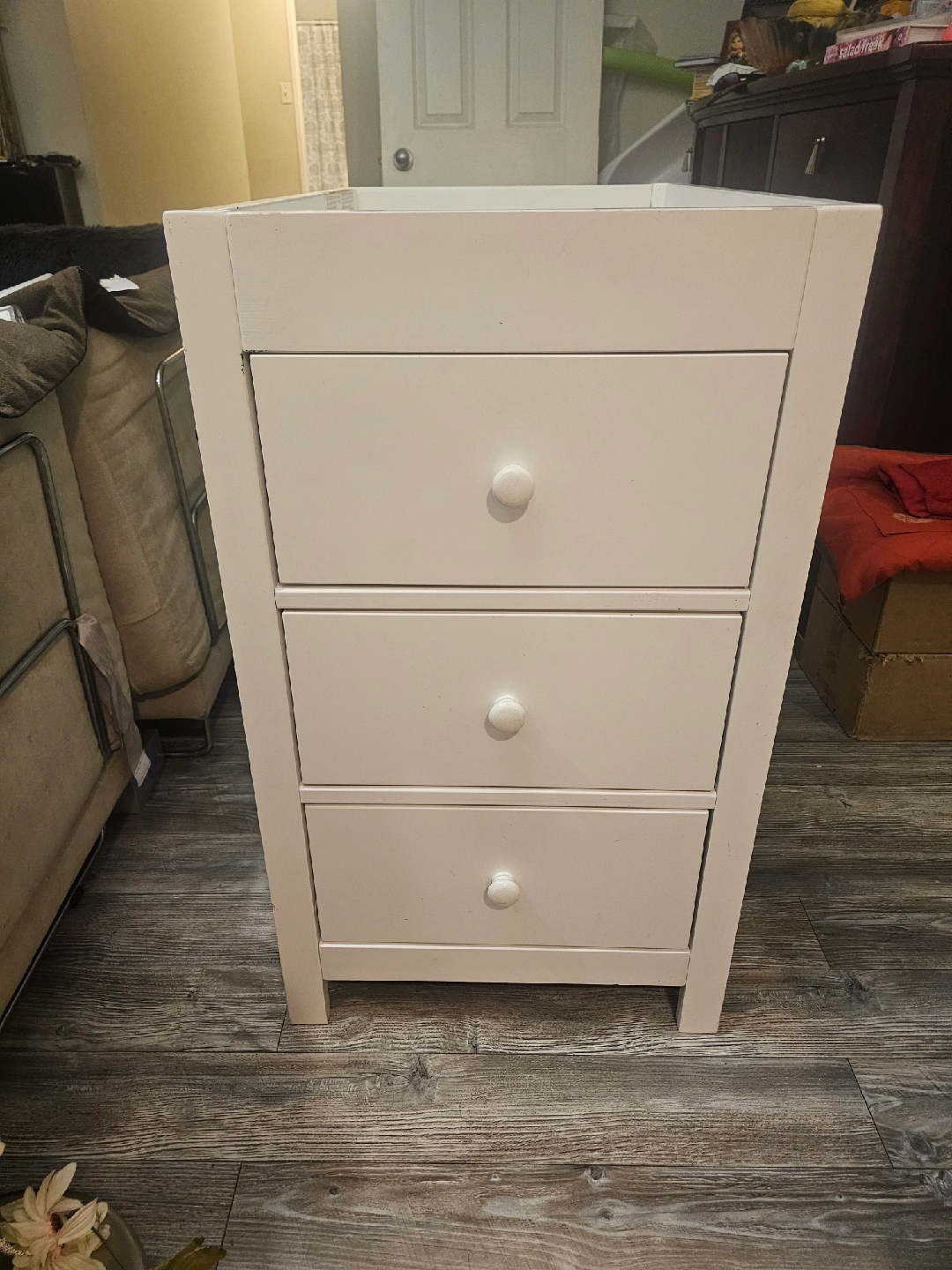 Selling a sturdy white changing table with three drawers! It's in great condition and offers lots of storage space for baby essentials. Perfect for keeping everything organized and within reach during diaper changes
