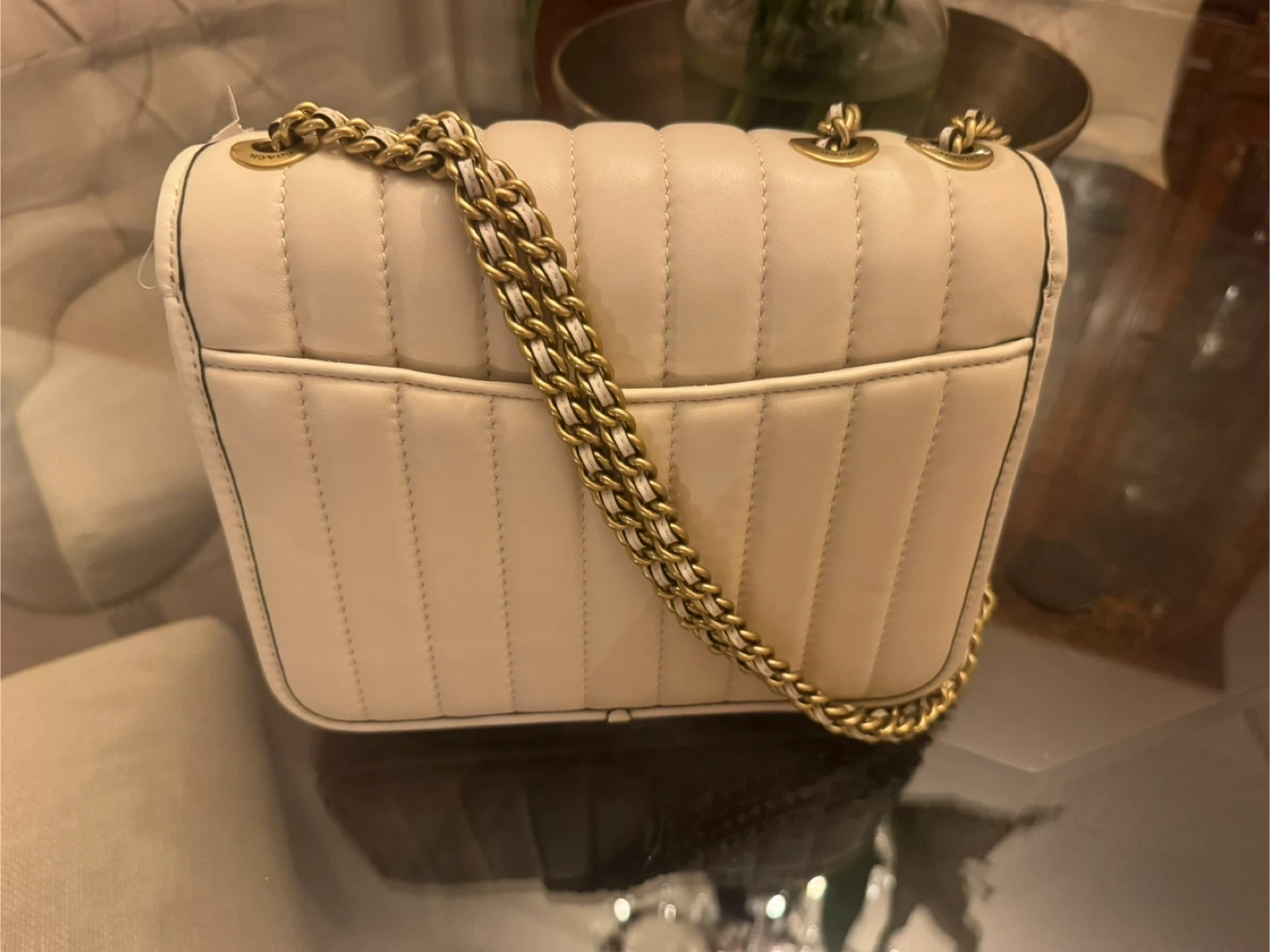 Coach Cream Quilted Leather Shoulder Bag