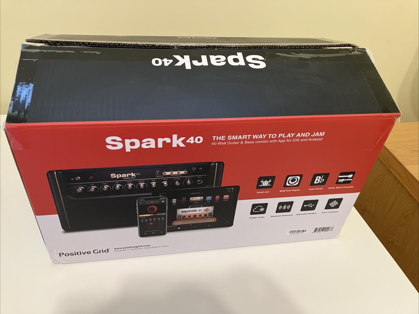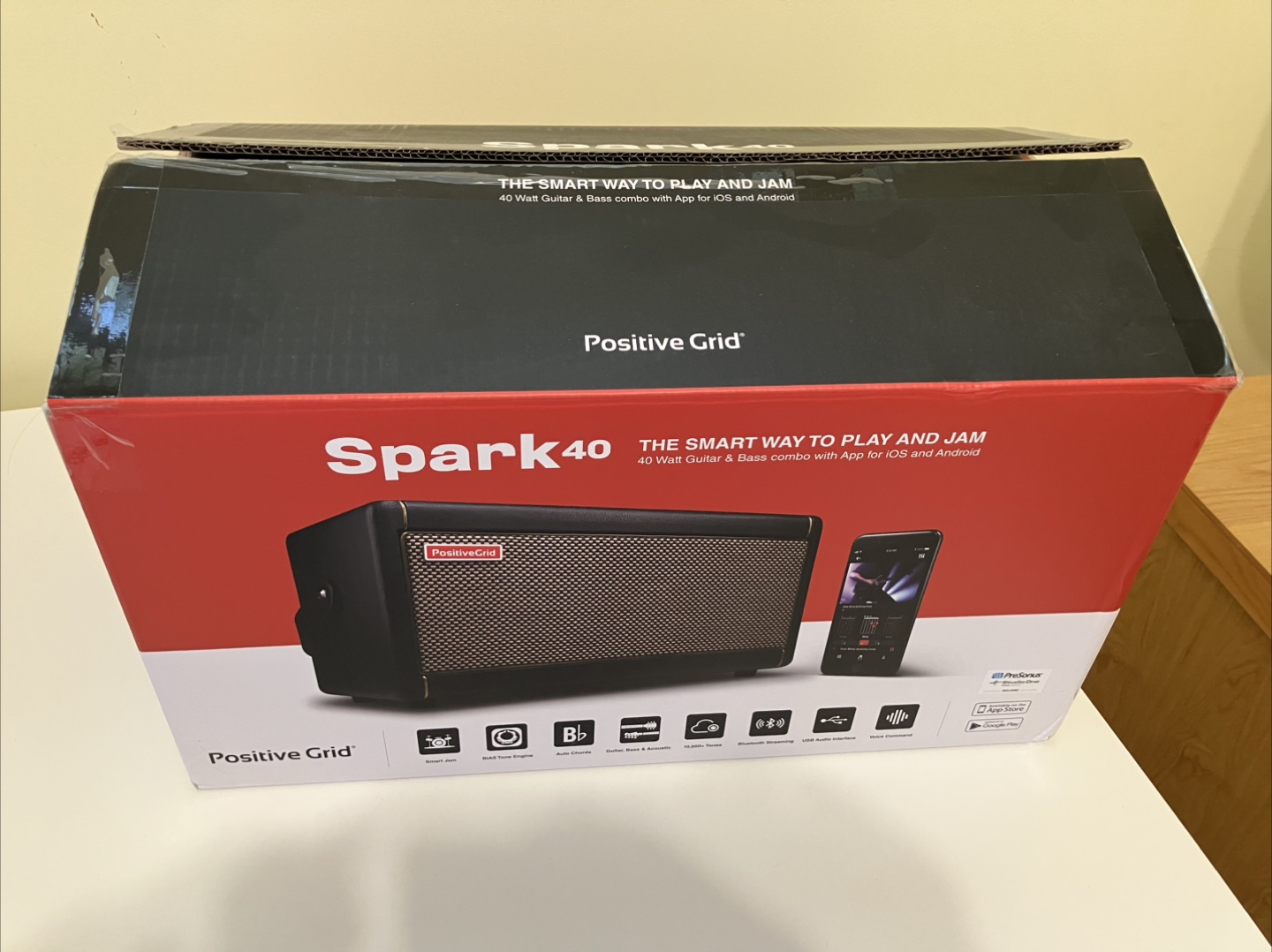 Brand new Positive Grid Spark 40 guitar and bass amplifier. This is a 40-watt combo amp with app integration for both iOS and Android devices. It's brand new with the original box!