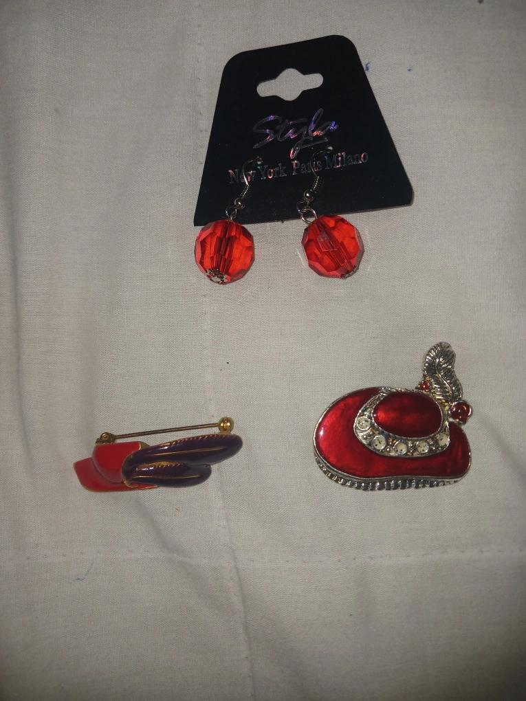31Selling a set of earrings and brooches from Style NY Paris Milano. The earrings are red and the brooches are also red with silver accents. They are in great condition! each is 8 dollars