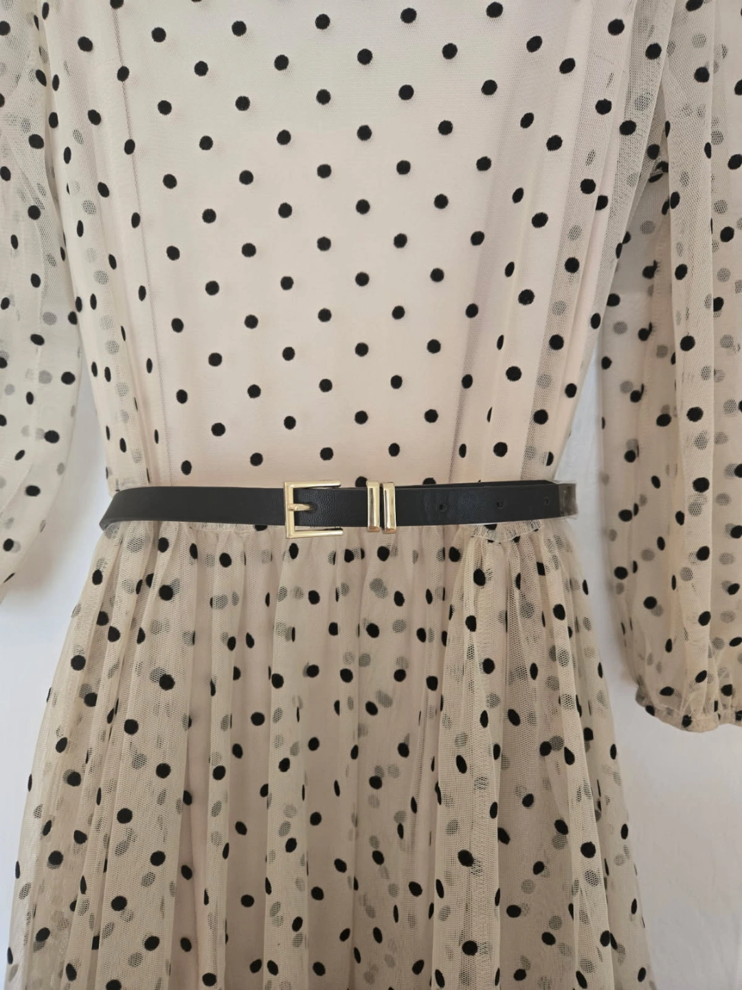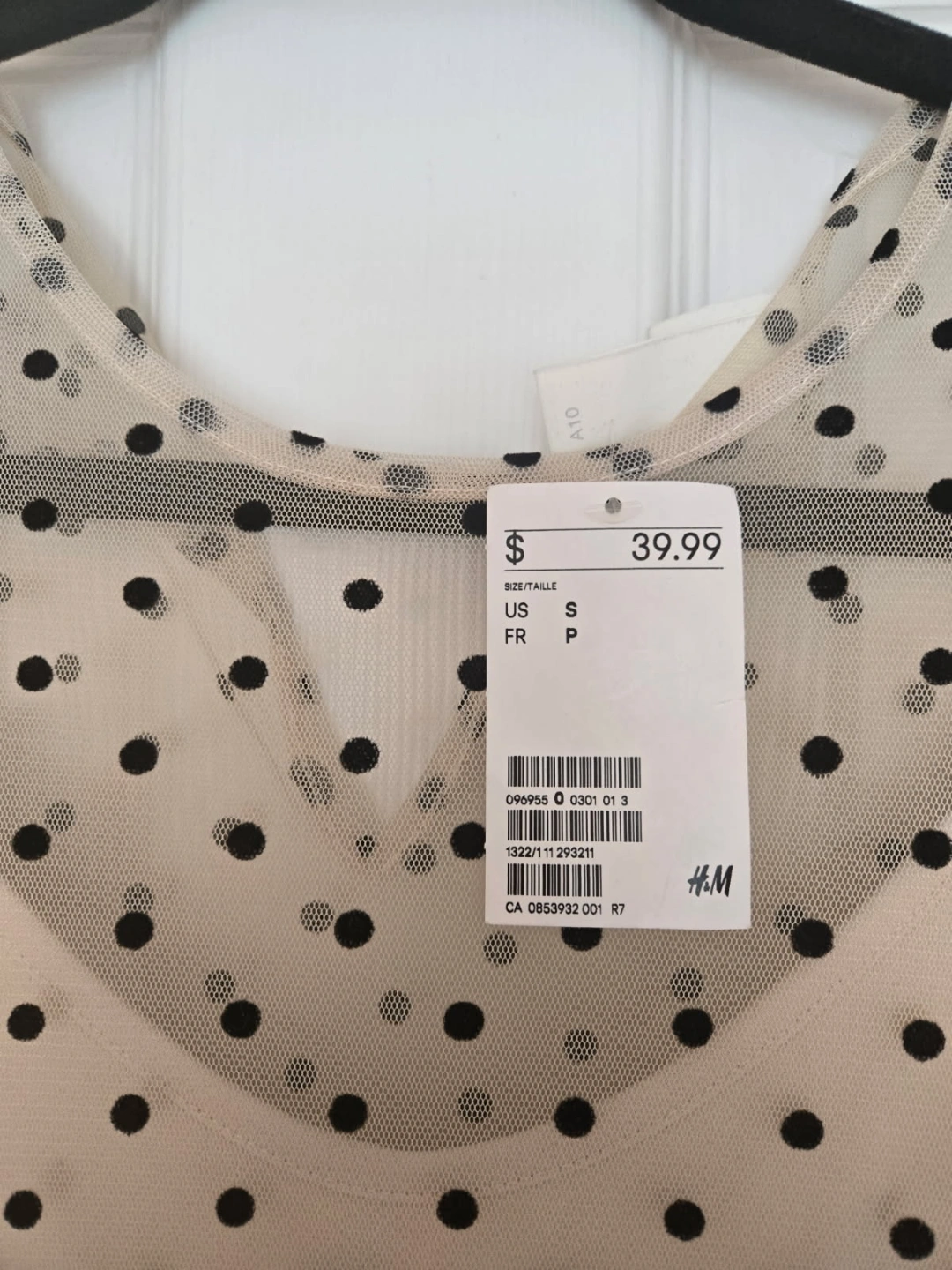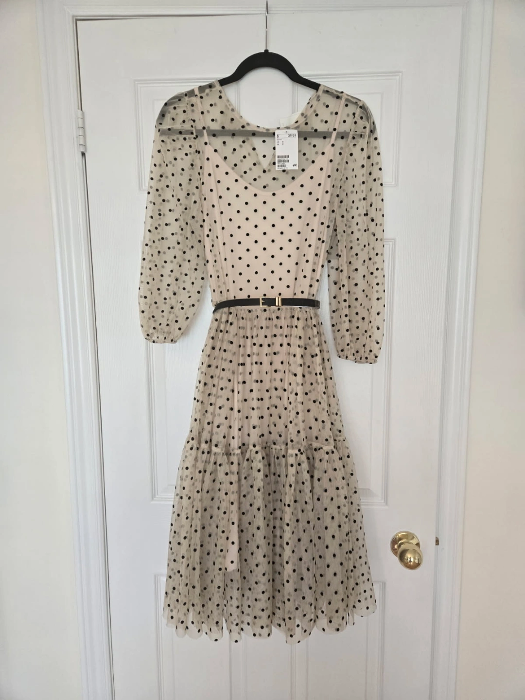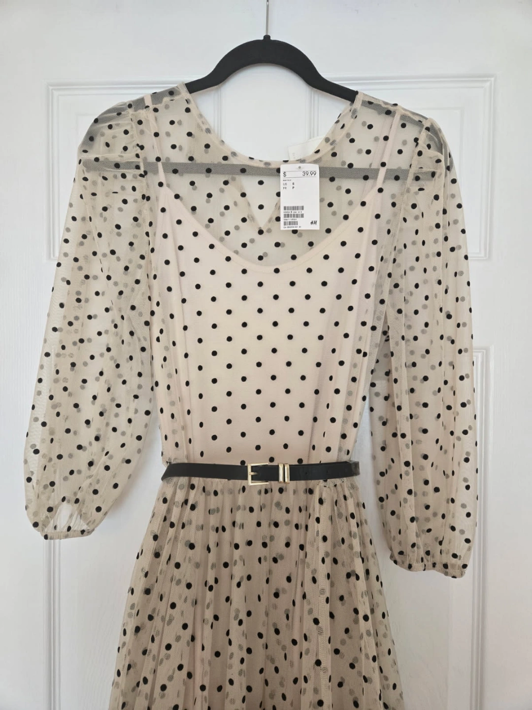 Brand new, never been worn classic H&M polkadot dress. Size small, however it is a bigger fit and would definitely fit a size Medium as well. Comes with a brand new belt from Aldo (the belt is size medium).