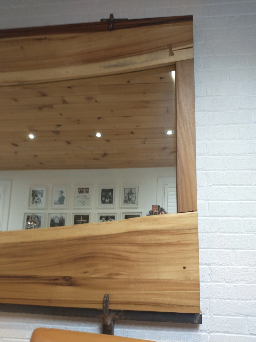 This is ONE OF A KIND live edge Suar Wood Wall Mirror.55" H x 104 " L ,it has carved edges.Great piece to add to your place.I paid $4800 selling for $1800 firm.Moving into a smaller place.