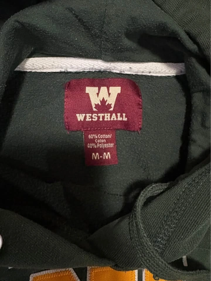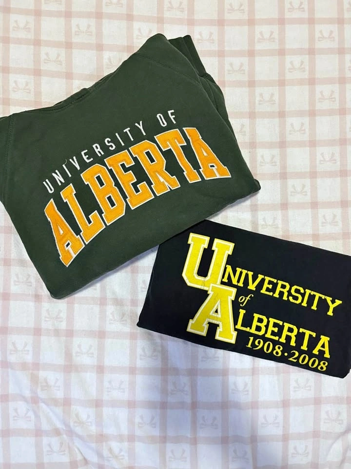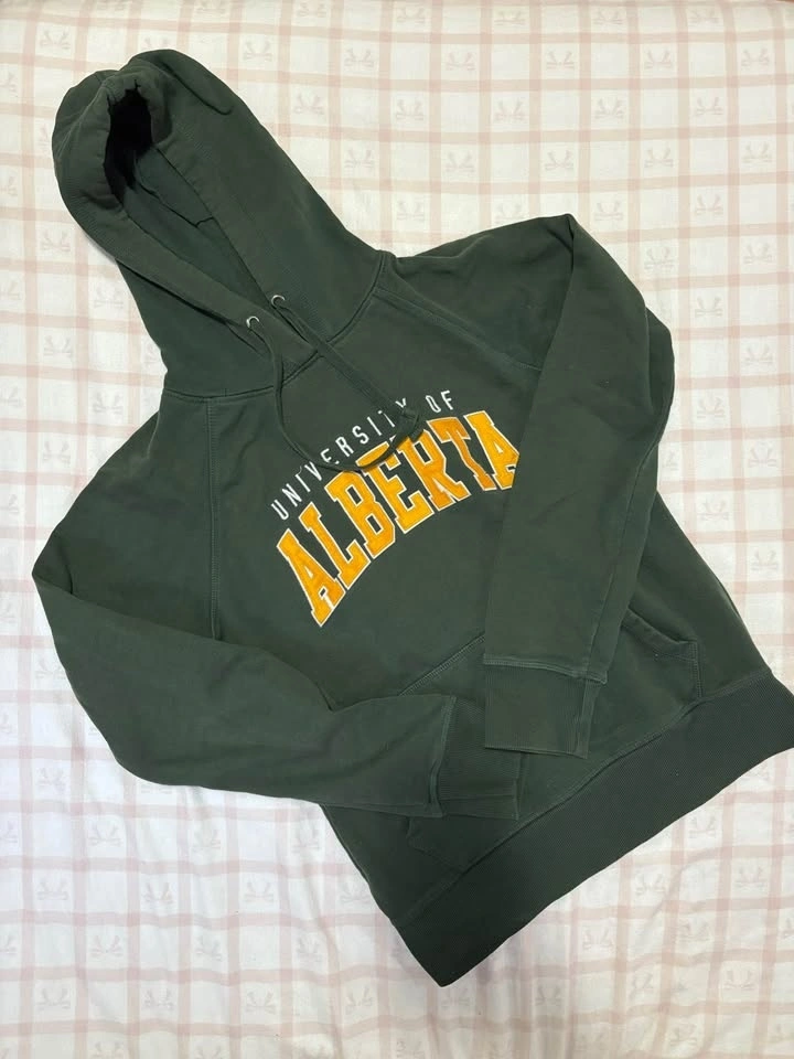 Green Hoodie University of Alberta - $20. Size Medium, fits more like a Small/ Extra Small. No stains or fraying.