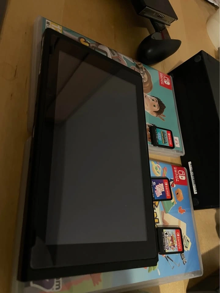 Nintendo Switch console (Model HAC-001) in fully working condition. No major damage or scratches, comes with a cover. Includes: Nintendo Switch console, Dock, Red & Blue Joy-Cons, Joy-Con grip, and 3-pin charger. Games included: Just Dance 2020, Moving Out, and Two Point Hospital. Everything works perfectly. Pickup in Kennedy/Sheppard.