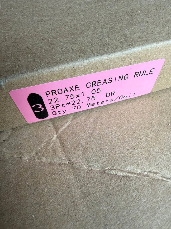 Buy & SellPROAXE CREASING RULE 4PROAXE CREASING RULE 4$2022. 75x1.05 3P+*22.75 DR Qty: 70Meters/CoilWHERE TO MEETCheck LocationView MapSELLERverifiedMityaRichvale903 reviews0 chats·0 favorites·1 viewsSEND CHAT TO SELLERHi Mitya! I’m interested in your listing.Hi Mitya! I’m interested in your listing.Get the Karrot app to chatSign In to chat