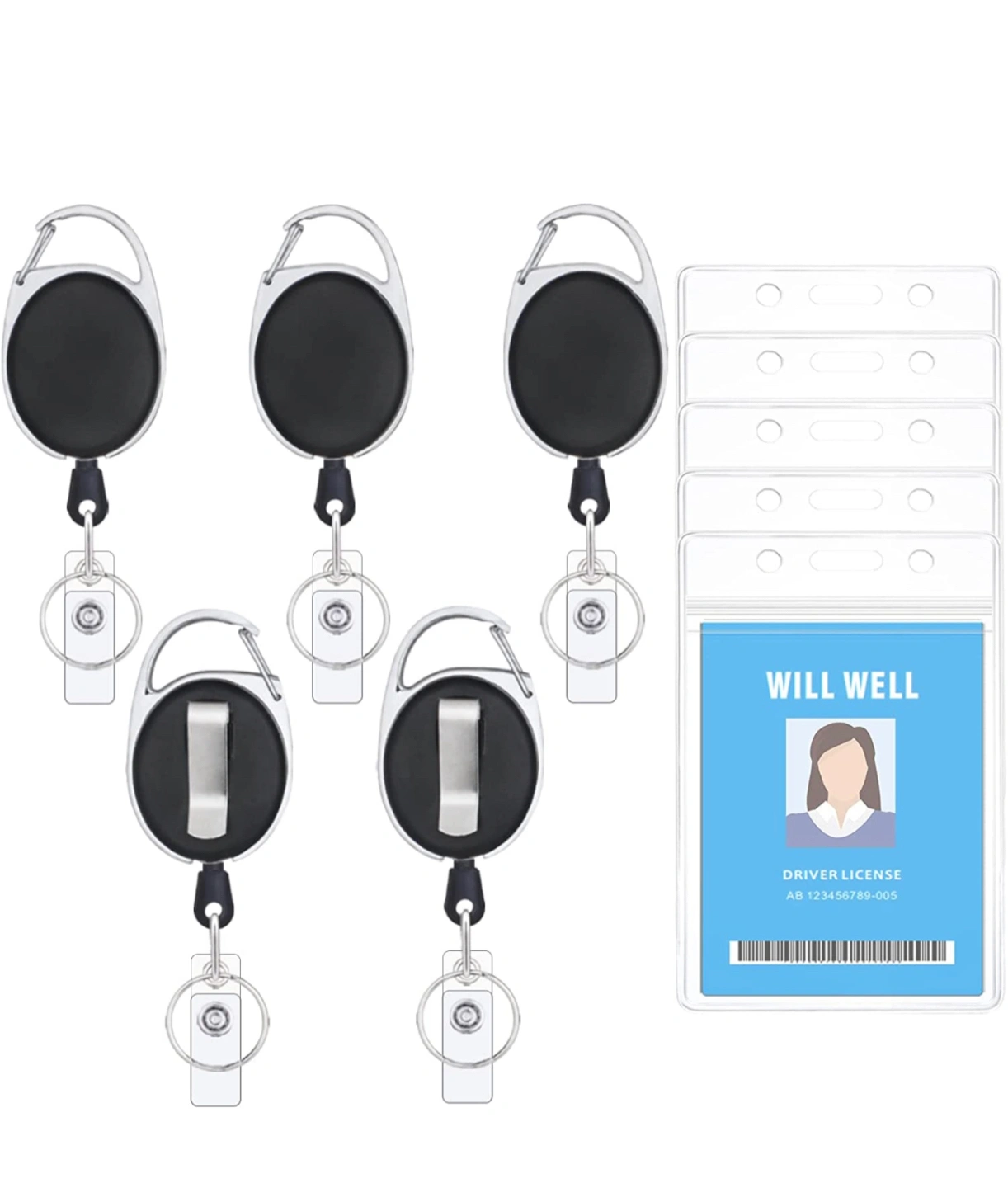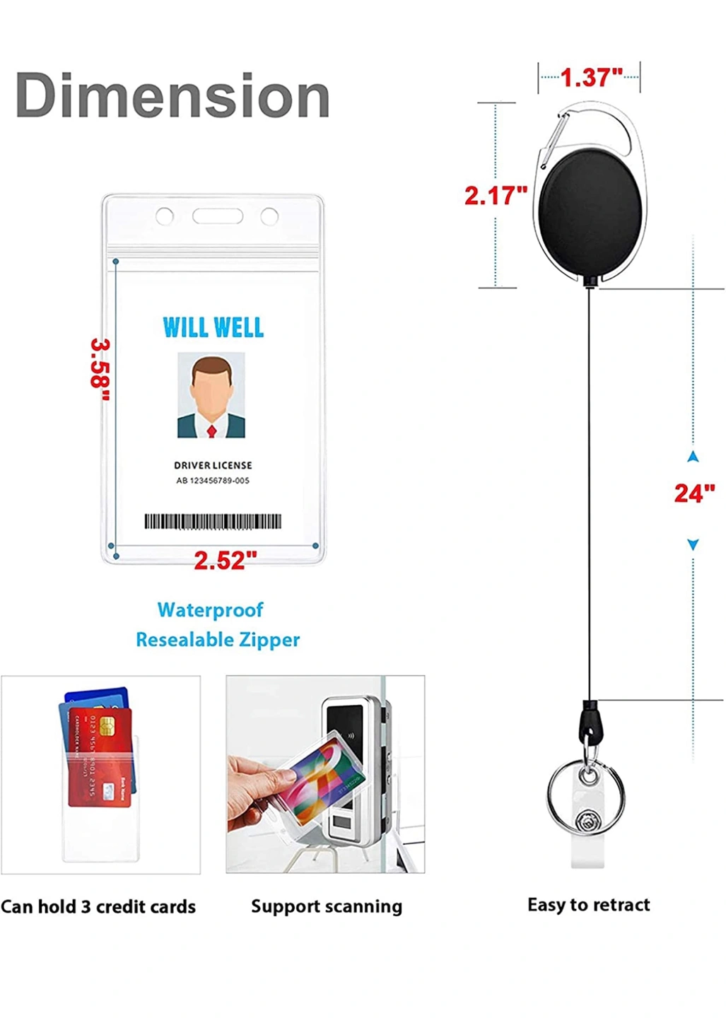 Holders with Carabiner Reel Clip and Vertical Style Clear ID Card Holders,