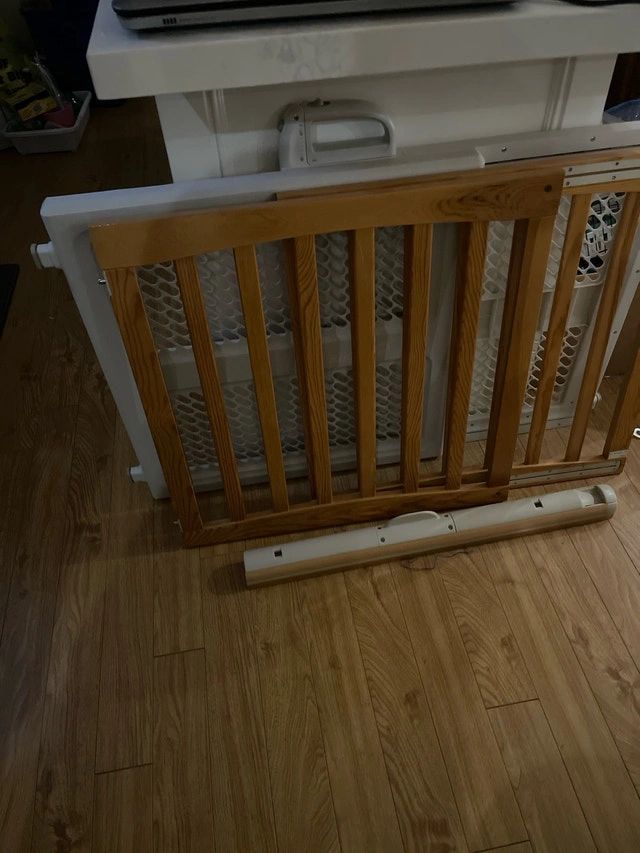 Wooden safety gate by Eddie Bauer.