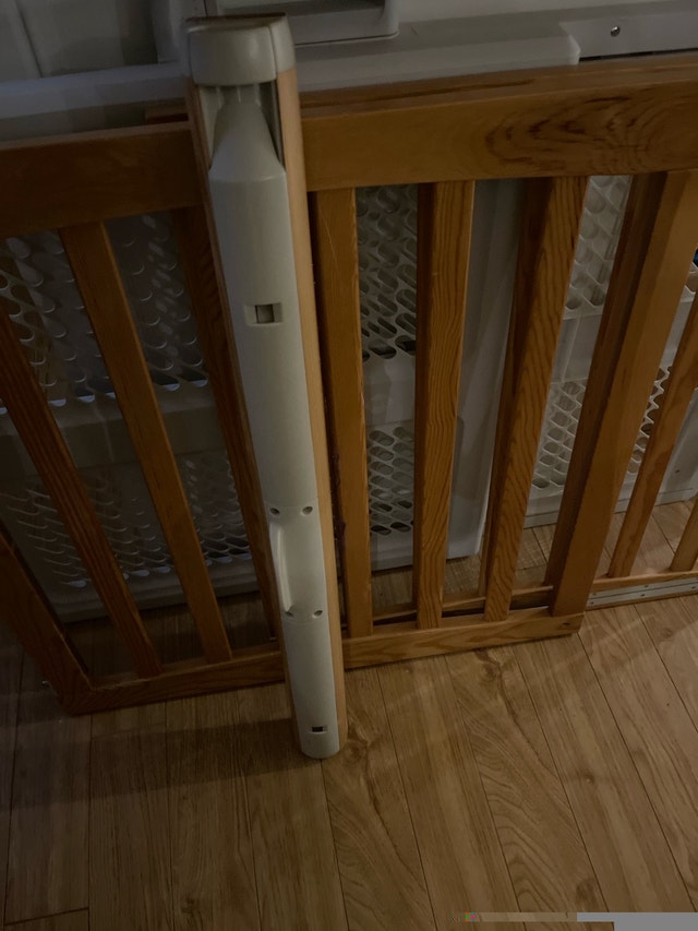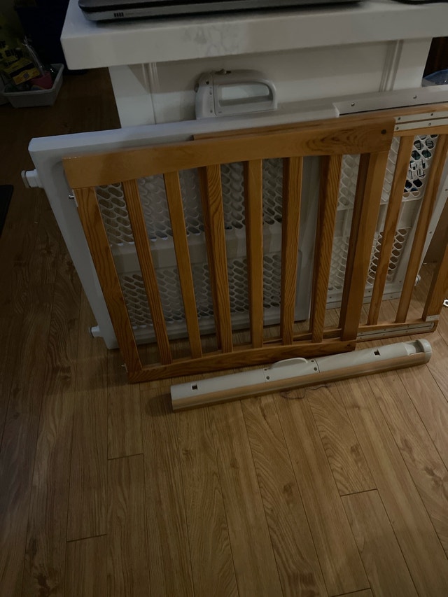 In excellent condition with an extra column that can strap or screw onto a wooden railing. Also have the original box. The width can be adjusted with a screwdriver. Safe and secure.