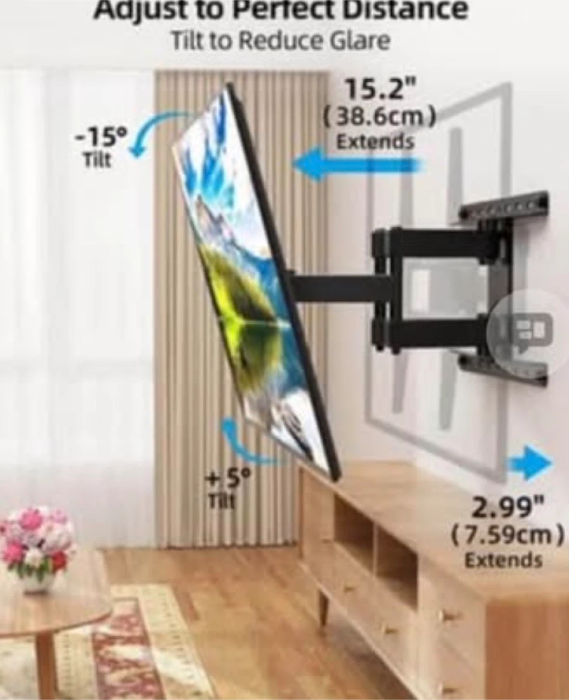 Full Motion TV Wall Mount for Most 26-70 Inch TVs Up to 132 LBS, Max VESA 400x400mm, Wall Mount TV Bracket with Swivel Extension Articulating Tilting Level, TV Mount Fit 12" 16" Wood Studs brand new in the box