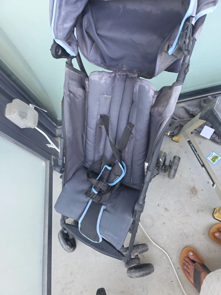 81I'm selling a used Summer Infant stroller in grey and blue. It's in good condition and ready for a new family! It's perfect for walks around the neighbourhood or trips to the park. I stored it on the balcony, but I’ve washed and cleaned it.