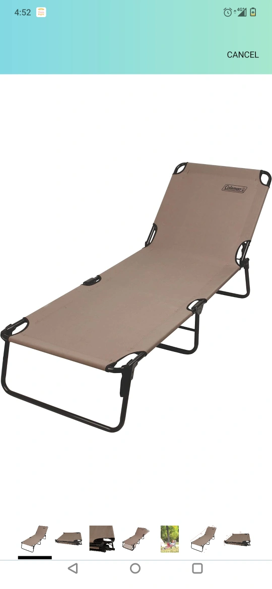 Top Highlights Colour Multicolor Brand Coleman Size One Size Item weight 91 g Style Folding Cot No Assembly required Frame size: 193 x 66 x 29cm (76 in. X 26 in. X 11.5 In.) Supports up to 102 kg (225 lbs.) Comfortably fits a person up to 1.88 M (6-feet 2 in.) Four different back positions: upright to completely reclined Two different foot positions. Strong folding steel frame
