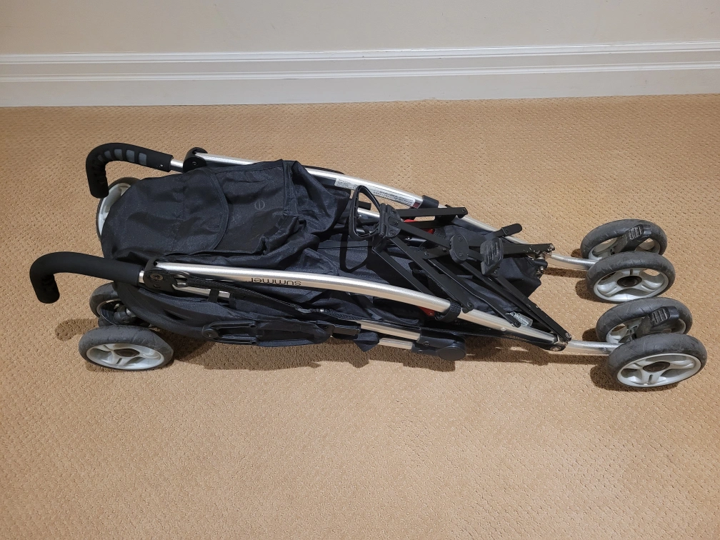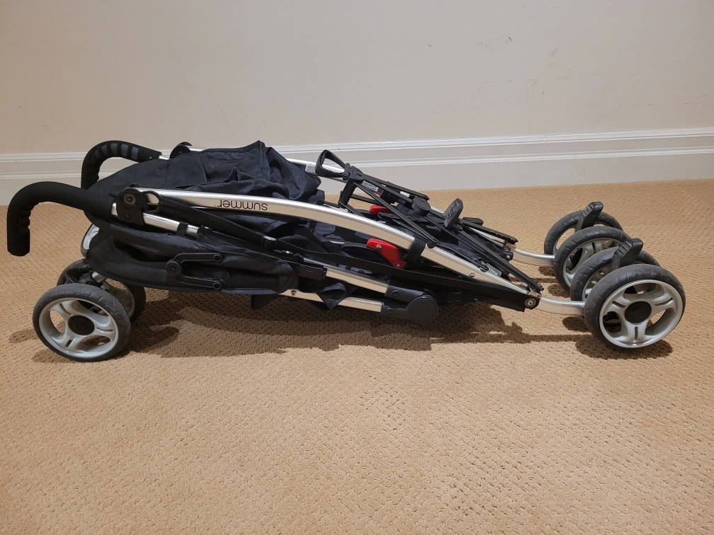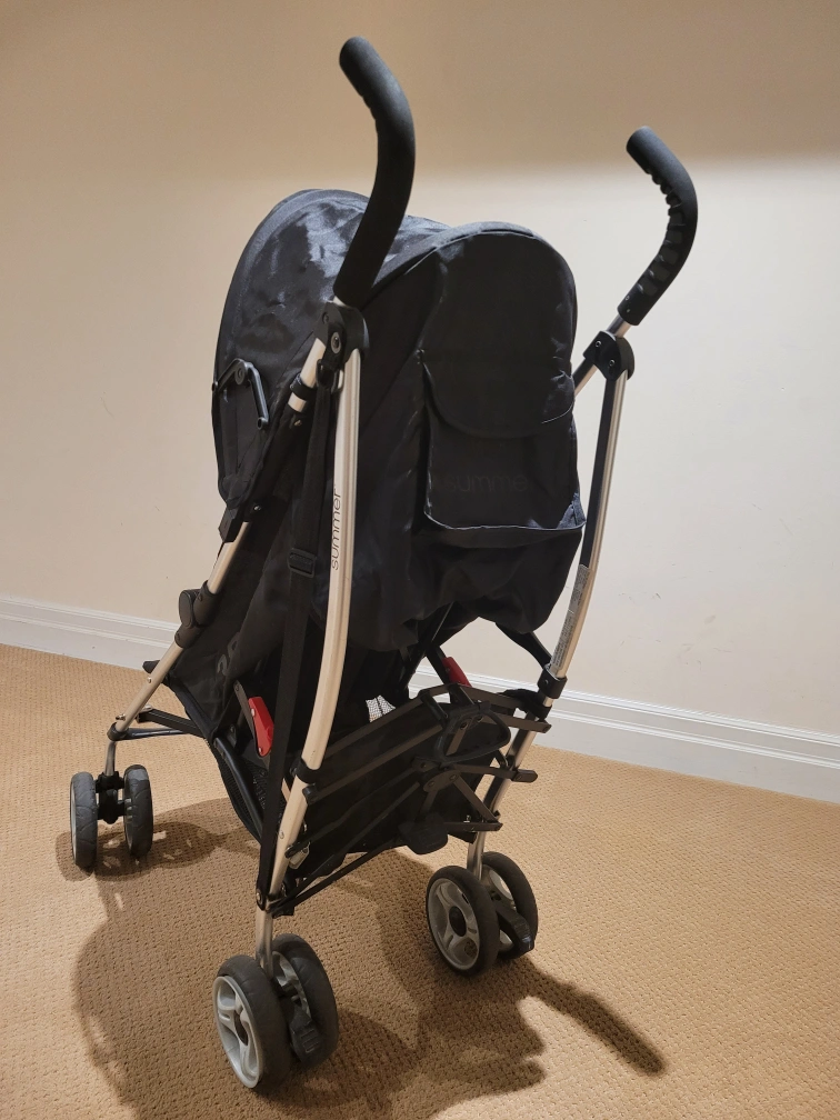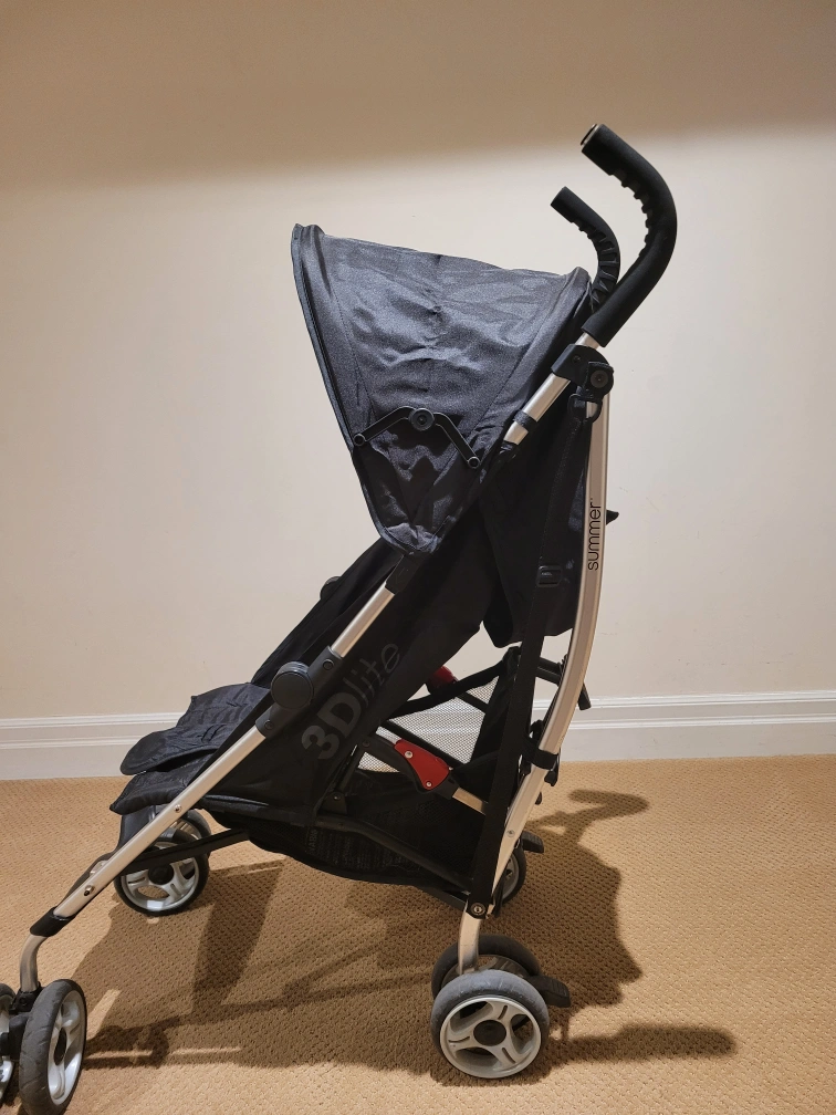 58Lightweight (only 11 pounds), durable steel frame Folds compactly with ease, perfect for travel or everyday Full-sized seat with multi-position recline keeps little ones comfy on the go Retractable canopy with flip-out sun visor.