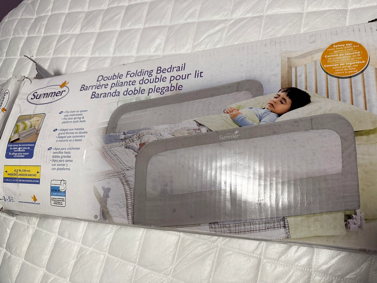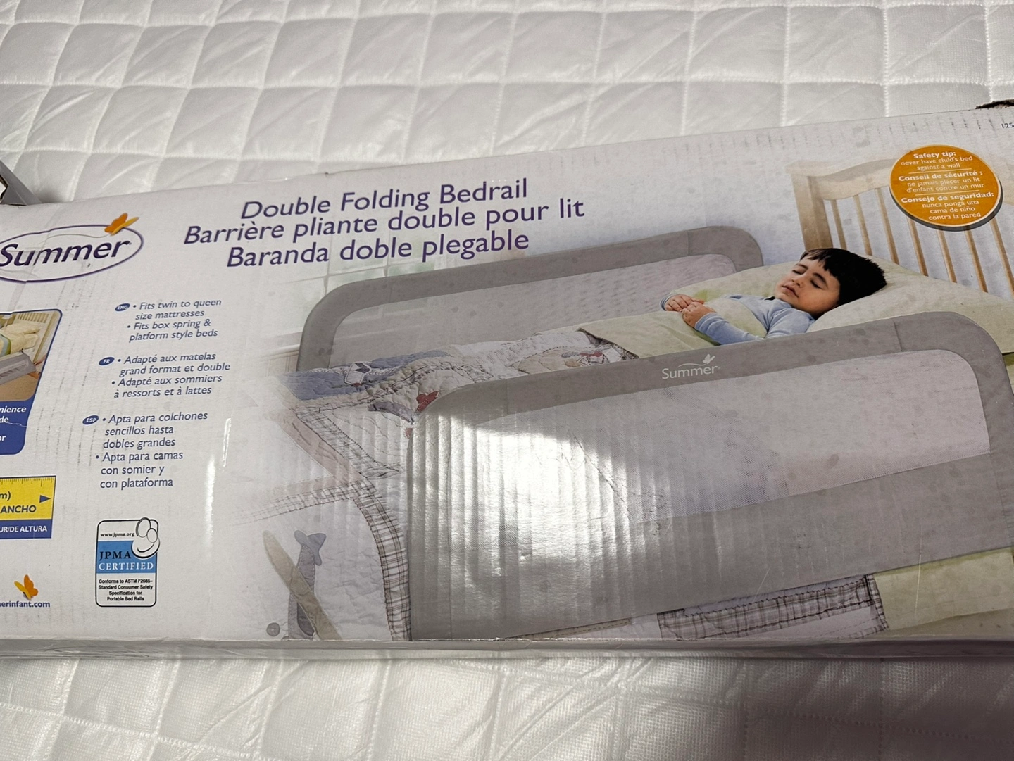 38Grey bedrail. Folds for easy storage. Fits twin to queen and platform beds. Excellent condition.