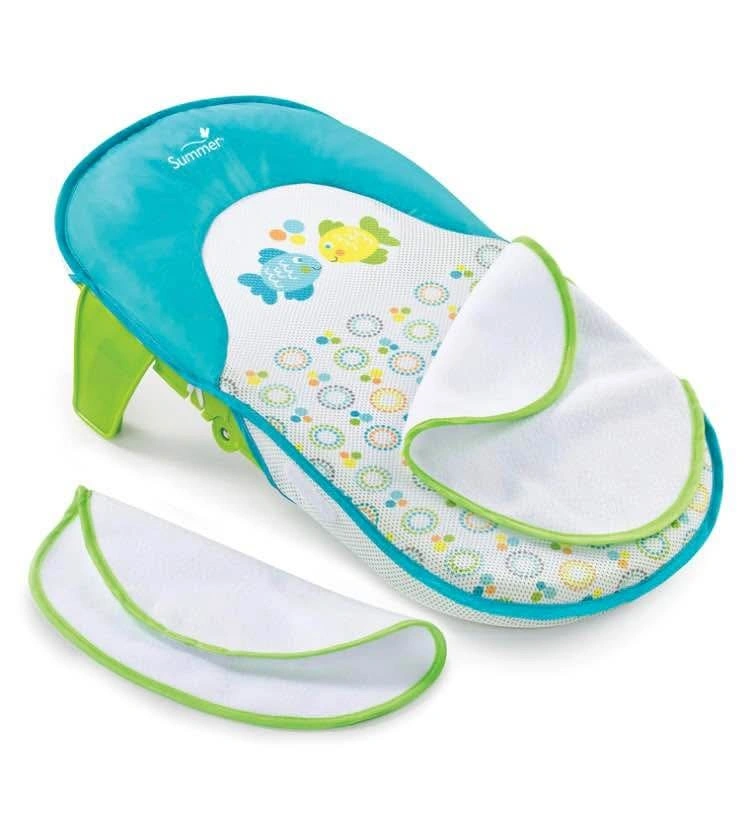 15Summer Infant Bath Sling. Features cushioned head support and warming wings. Stock photos show use in sink, and adult bath tub. Can also be used in some baby/toddler tubs. Foldable for travel and storage. Pick-up in Meadowood neighbourhood near Brentford from smoke-free, bug-free, pet friendly home.