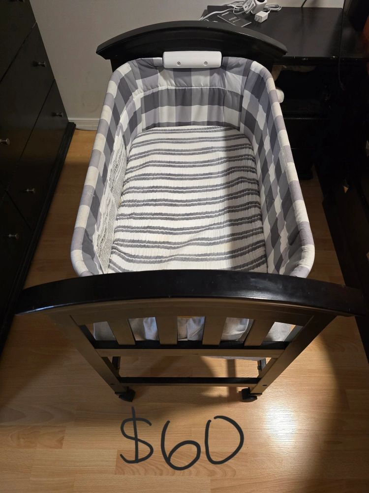 15Selling my Summer Infant Wood Frame Bassinet. It's in good condition and ready for a new home. Perfect for keeping your little one close by during those early months. Bassinet is on wheels, and the back wheels lock as well. Also has a snap on bottom shelf to hold diapers/etc, but I just have it removed right now. $60. Smoke free, pet friendly home.