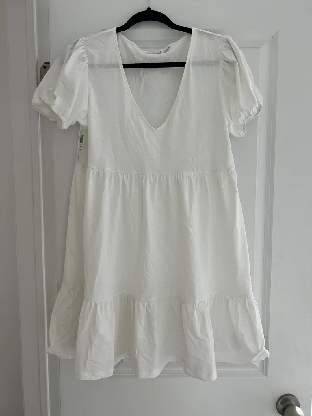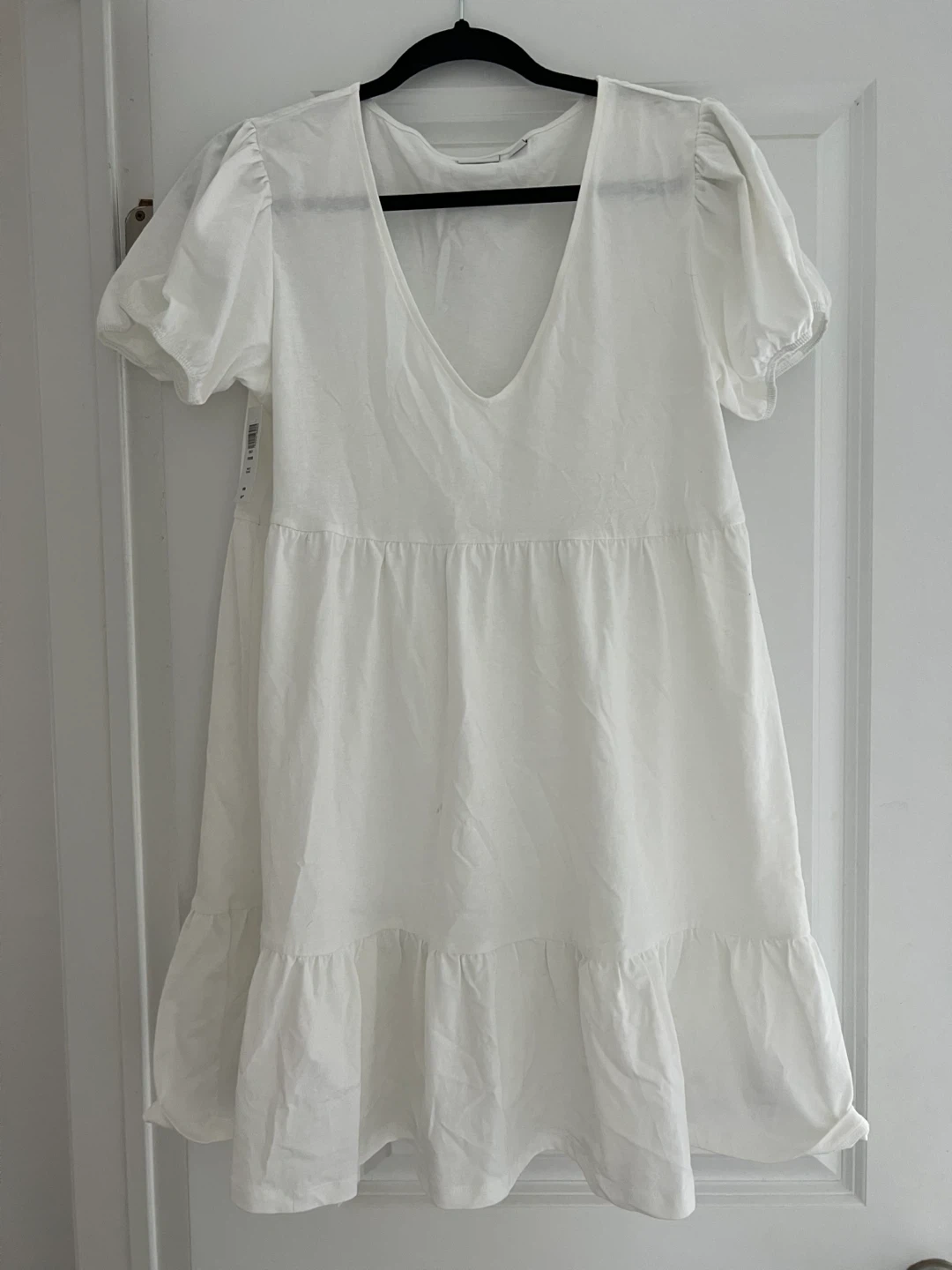 0Selling a Sun.deh Cruise dress in white. It's a size M/M and in great condition. Originally bought for $58.00. It's made in China and the care instructions are: machine wash cold with like colours, do not bleach, tumble dry low, cool iron only if needed, do not dry clean 100% cotton Smoke free home Pickup bowmanville