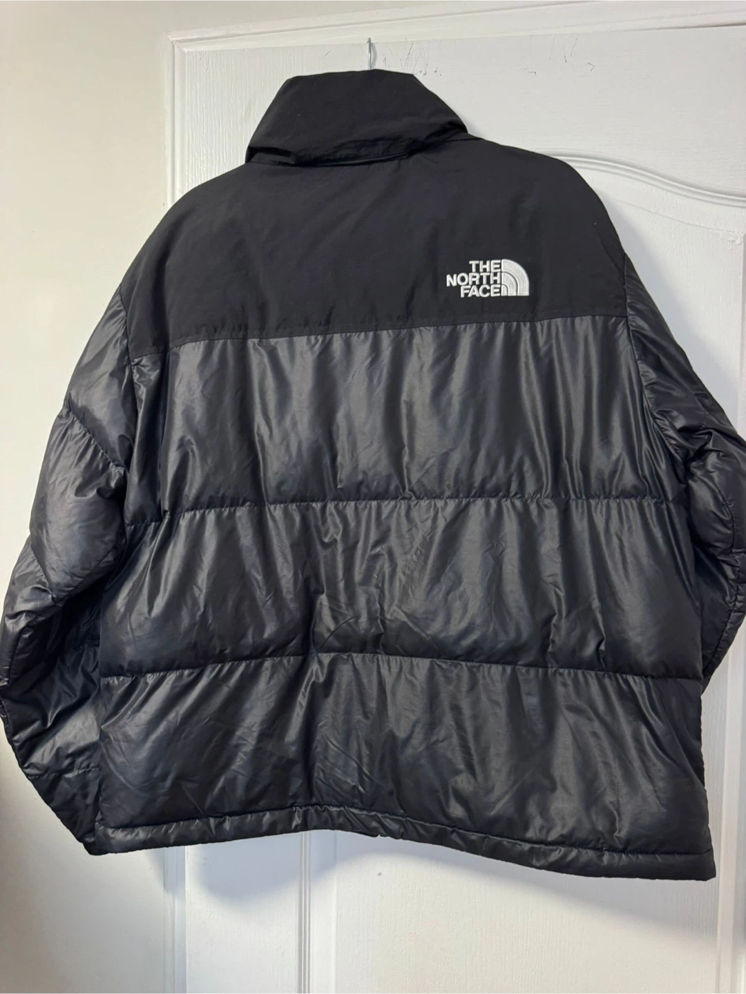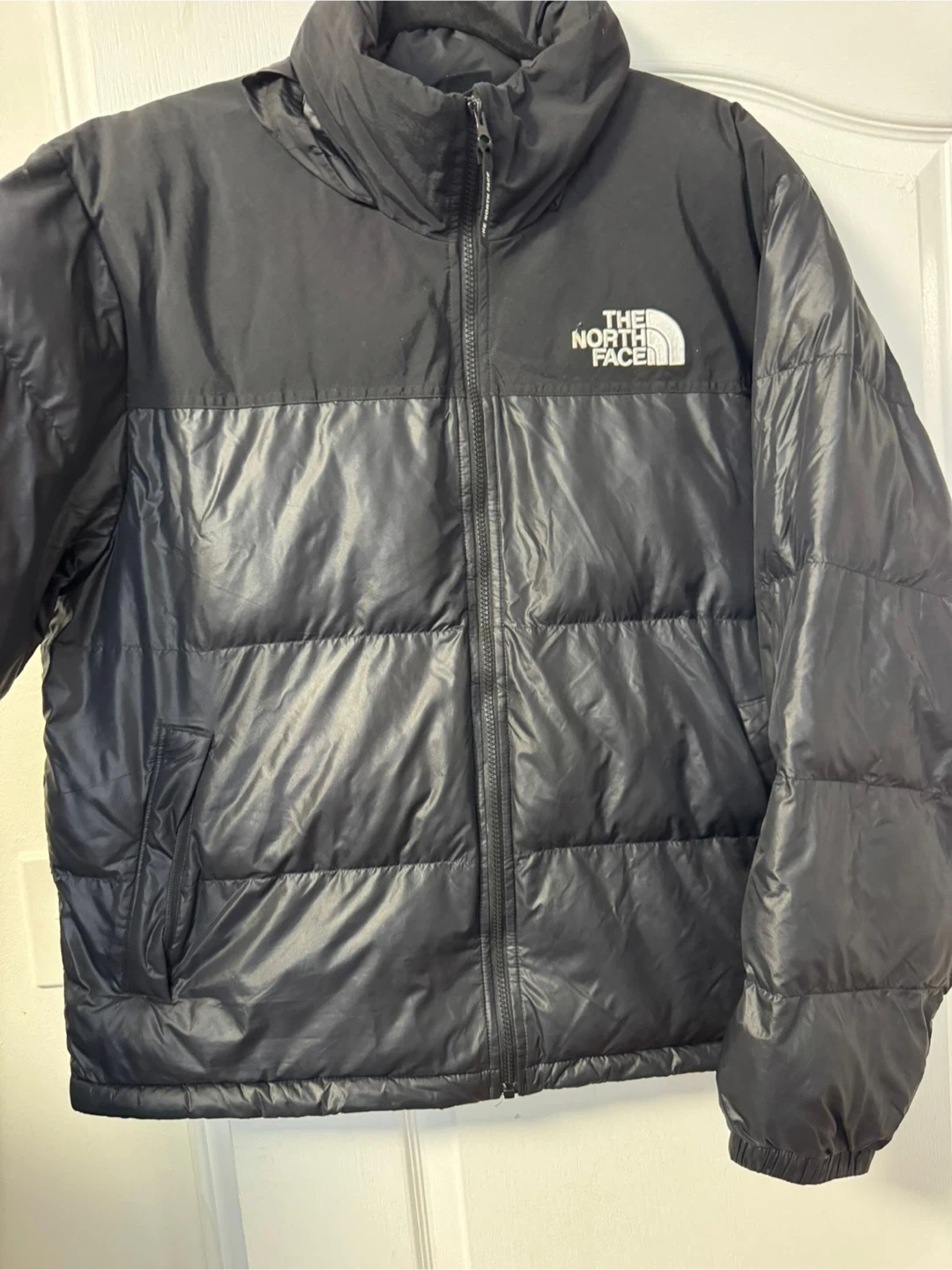 This is a black puffer jacket from The North Face. It's a size XL/TG. It's warm and great for cooler weather!