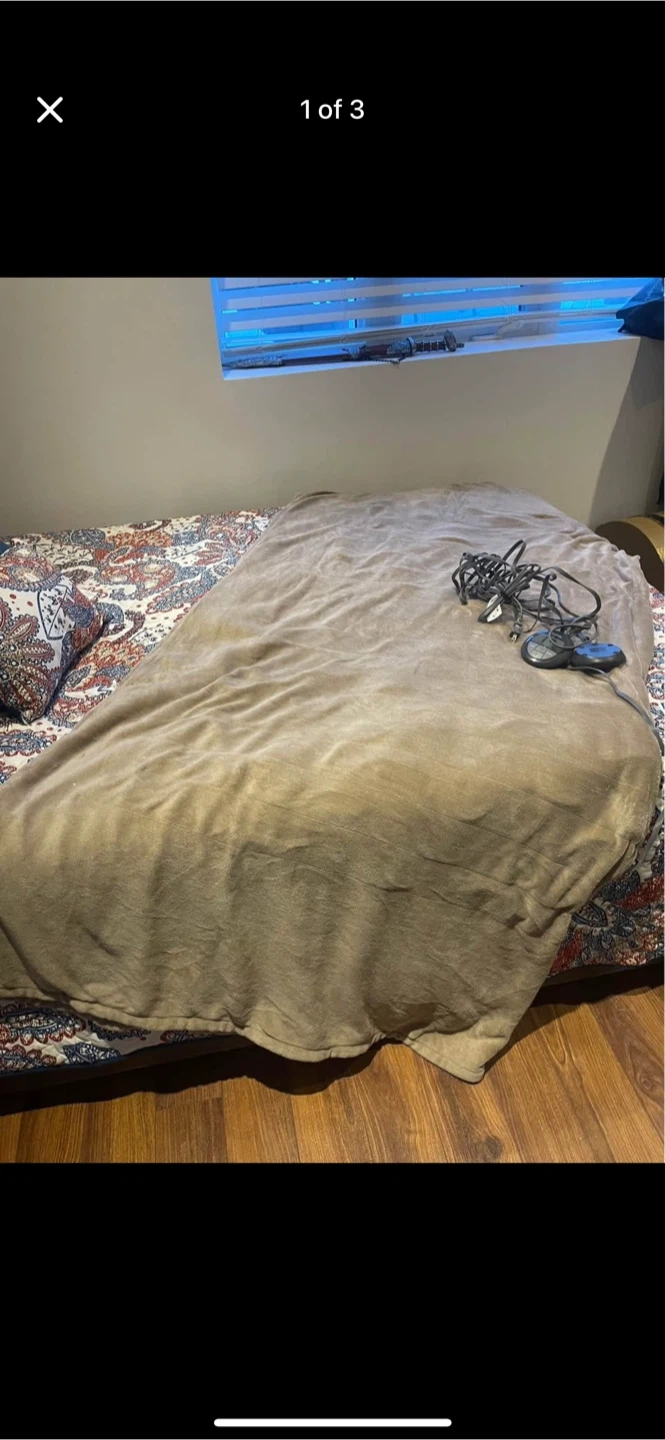 Snuggle up with this cozy Sunbeam heated blanket! It's in great shape and ready to keep you warm on those chilly nights. The blanket is a lovely taupe colour and comes with the controller. Perfect for adding a little extra warmth to your bed or couch