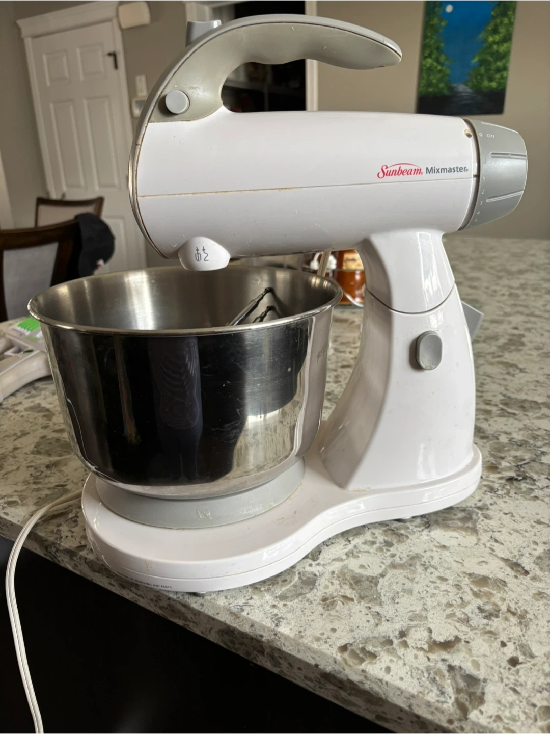 Selling a Sunbeam Mixmaster stand mixer! It's in good working condition and ready for your baking needs. Comes with the bowl and beaters as shown in the pictures. Perfect for making cakes, cookies, and more!
