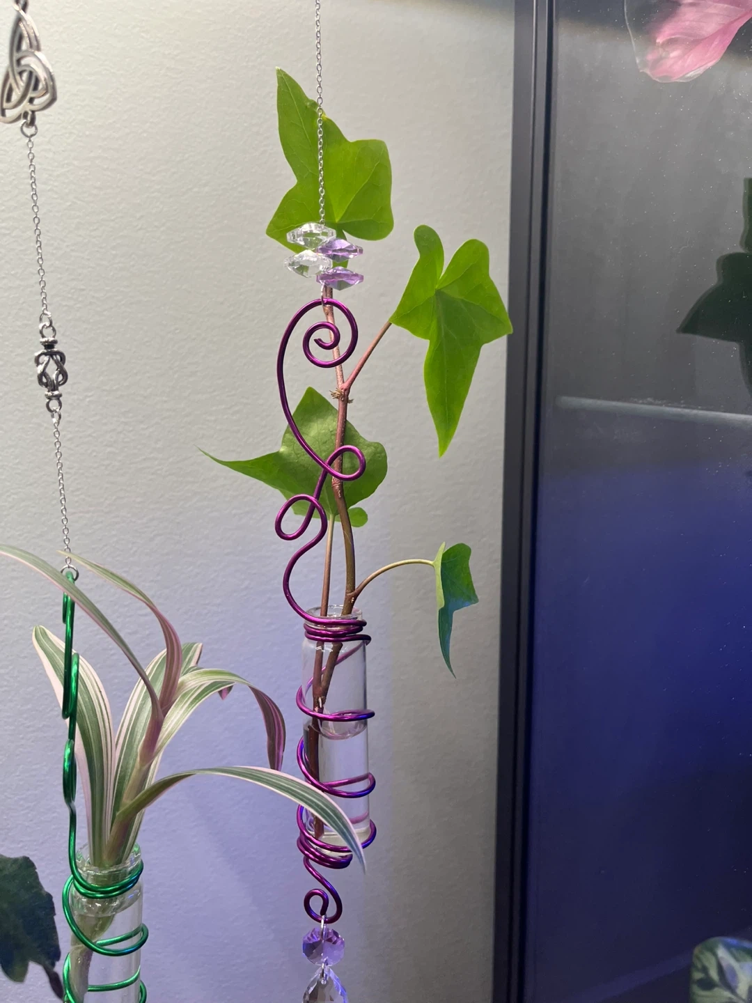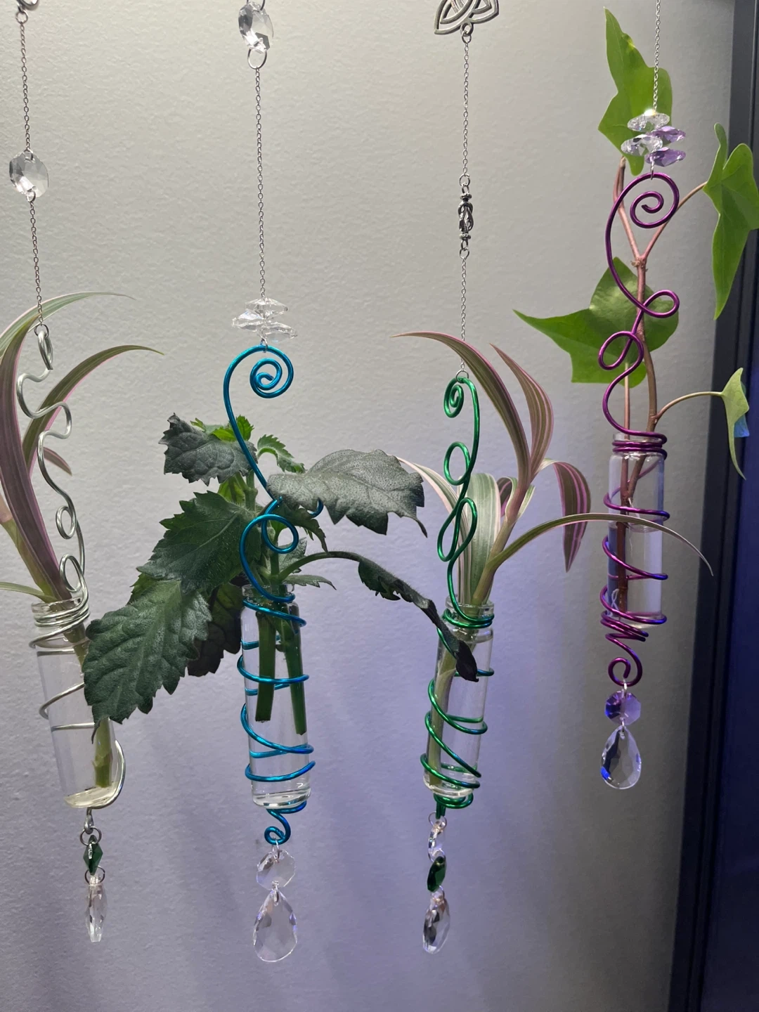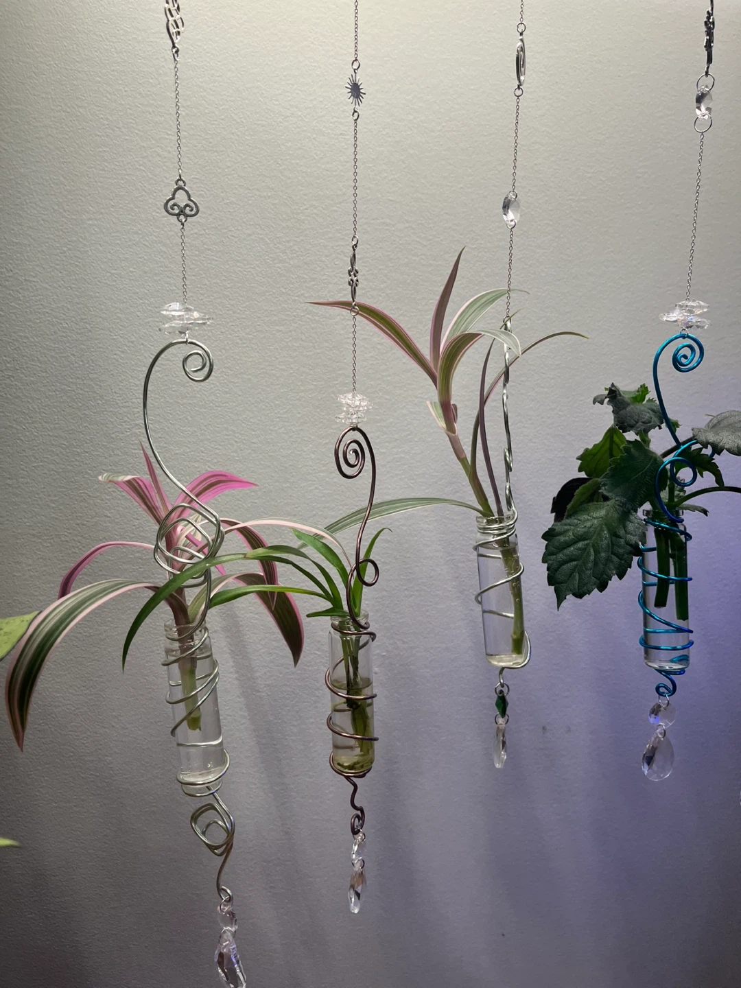 Variety of whimsical Suncatcher Propagation Jars with cuttings. Each one features different coloured wire, crystals and charms but can be customized Cuttings currently available are: :Tradescantia Rhoeo :Algerian Neon Ivy :Swedish Ivy $12 each with cuttings or $10 each without cuttings. What’s shown is what I currently have available but if you would like one customized just send me a message! Pick up at “The Plant Witch” in Erin Ridge, St.Albert Check out my other listings or go to my website theplantwitch.ca to browse through my catalogue 🪴