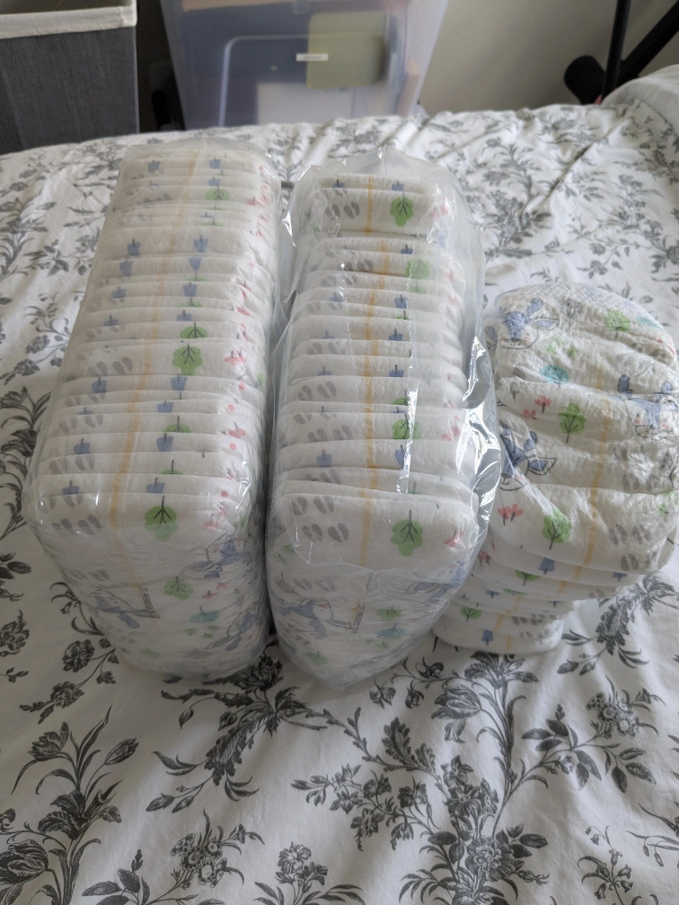 And couple pouches of Kirkland diapers total of 58 size 5 diapers.