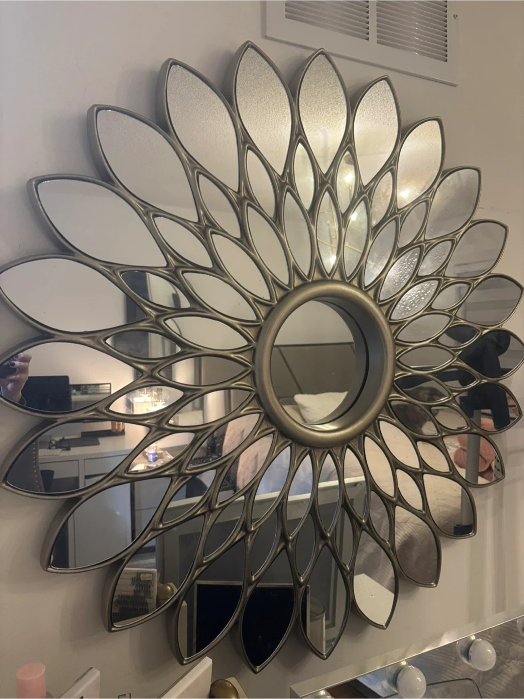 Selling a beautiful sunflower wall mirror with a gold finish! It’s in great condition and would add a lovely touch to any room