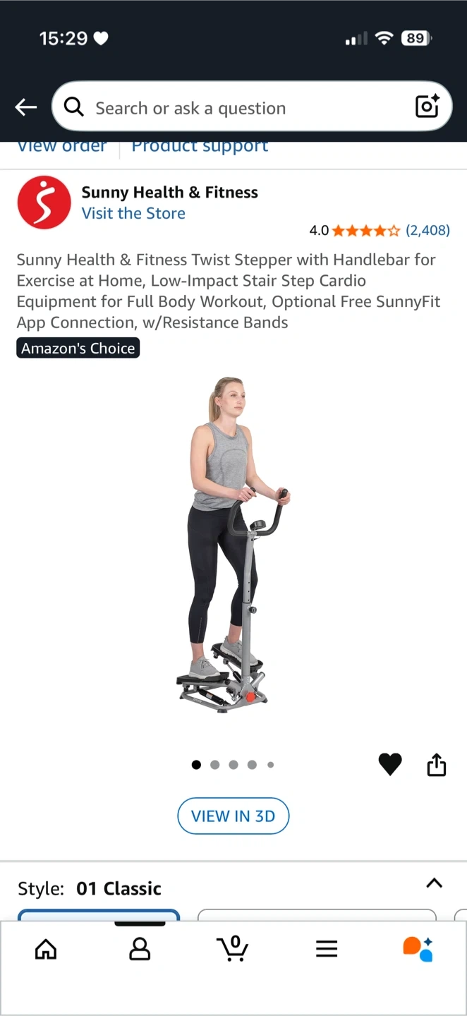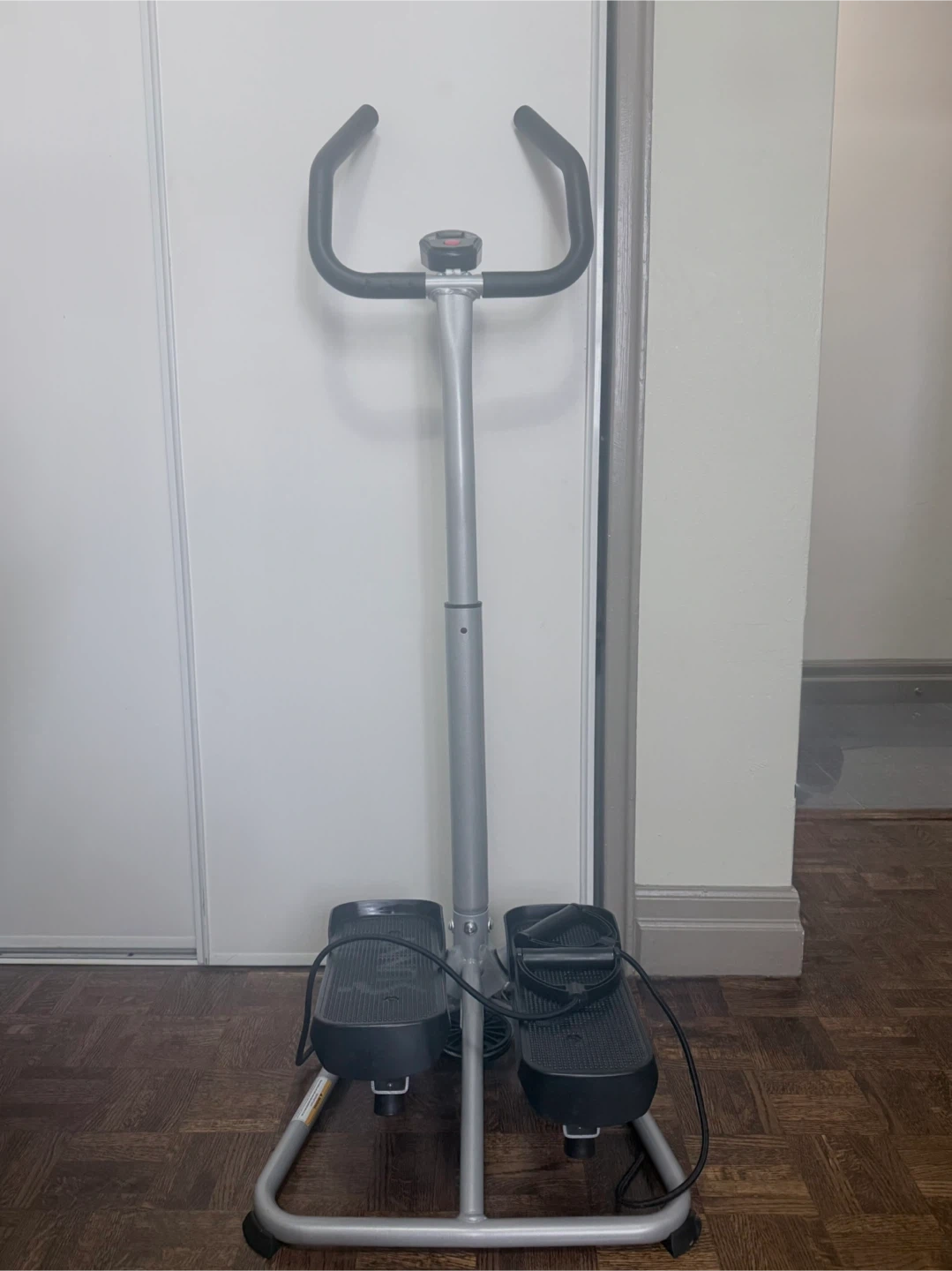 51~ few minor dents on the handle bar but overall, it’s pretty new ~ from Amazon Sunny Health & Fitness Twist Stepper with Handlebar for Exercise at Home, Low-Impact Stair Step Cardio Equipment for Full Body Workout, Optional Free SunnyFit App Connection, w/Resistance Bands