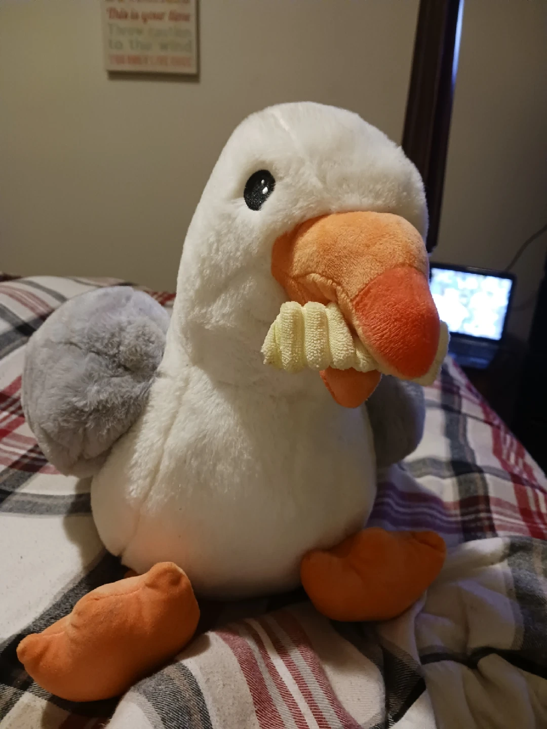 15Looking to sell this adorable Sunny the Seagull plush toy! It's in great condition and ready for a new home. A super cute and cuddly friend!