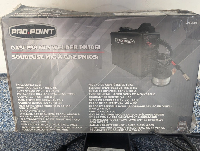 60Take on small welding jobs with this portable, lightweight inverter MIG welder that has both a gas and gasless option. It incorporates the latest in IGBT technology for maximum efficiency and longer duty cycles, and it features a wire-free speed that is automatically calibrated and synergic control knob settings. Feature(s) Inverter and IGBT technology produces smoother weld characteristics than traditional welders. Delivers a 20% duty cycle at 105A. Runs off of 115V AC power sources. Includes a regulator, torch, earth lead and a roll of flux-core wire.