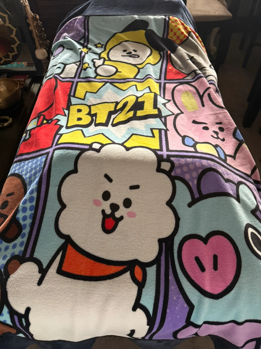 15Selling a super soft and cute BT21 throw blanket! It features all your favourite characters in a colourful comic book style design. Perfect for adding a touch of fun to any room