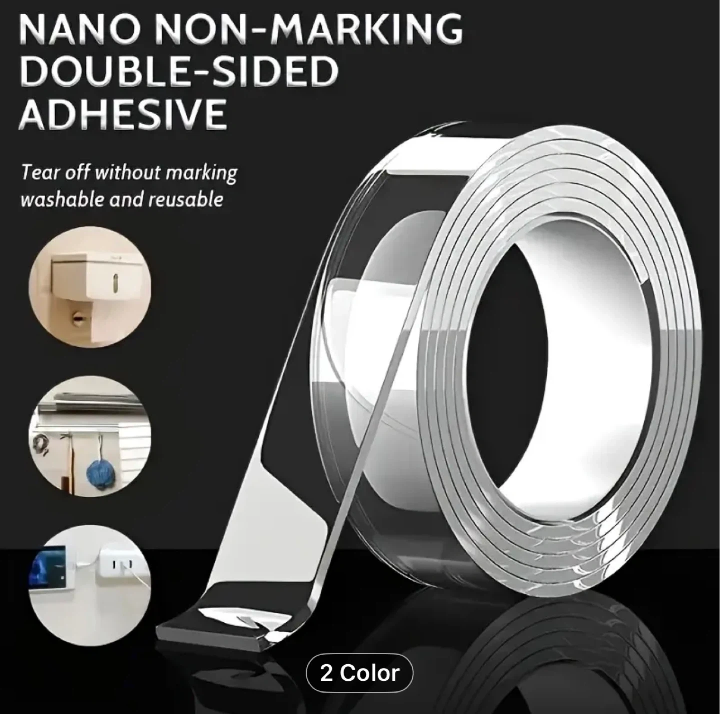 Super strong adsorption force Heavy-Duty Dual-Sided Nano Tape - Extra Strong Adhesive, Reusable & Versatile for Crafts, Christmas Decorations & More - Ideal for All Surfaces, Essential MultiPurpose