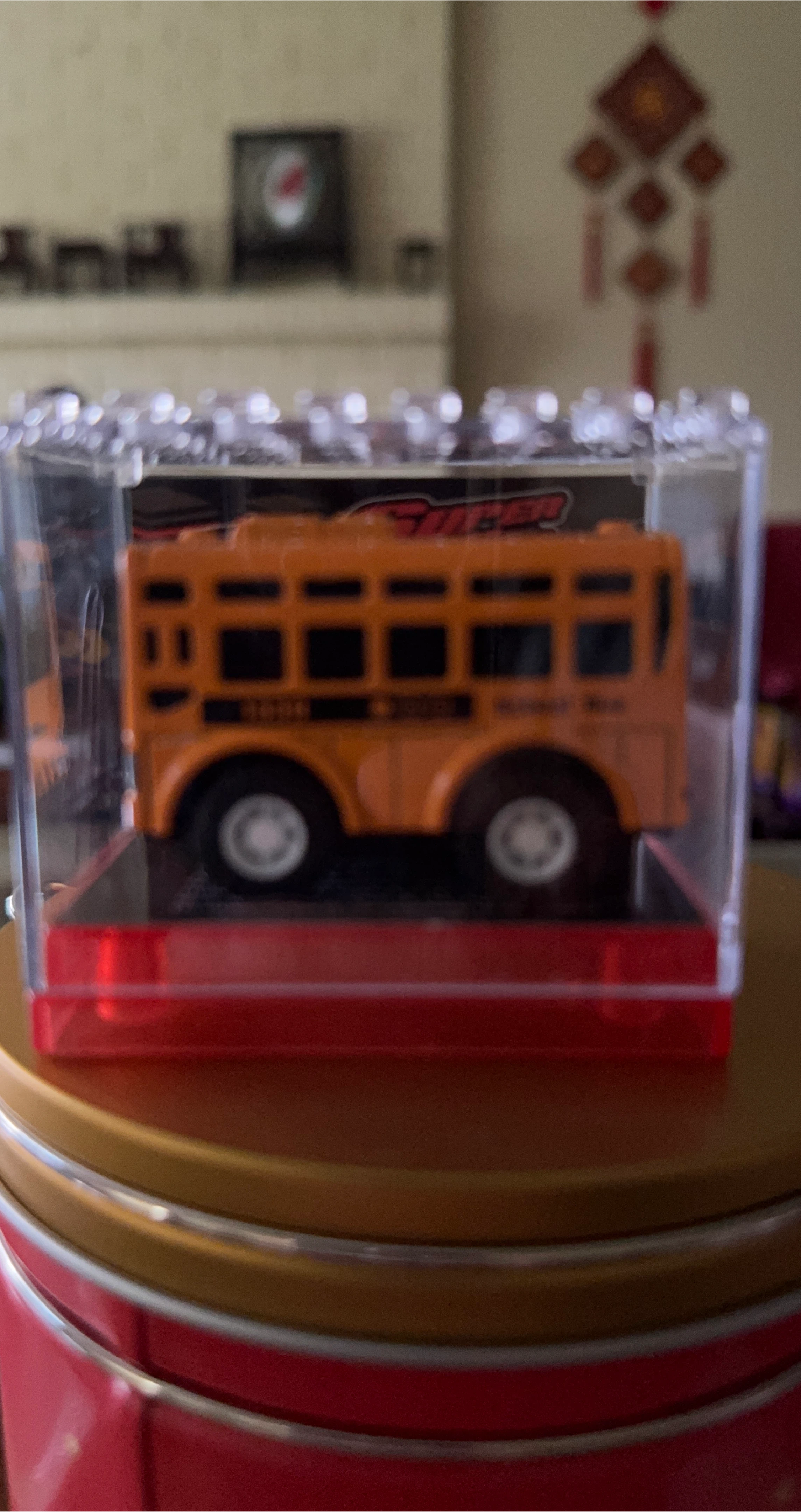 10Selling a Super Wheels school bus toy. It's orange and comes in its original display case