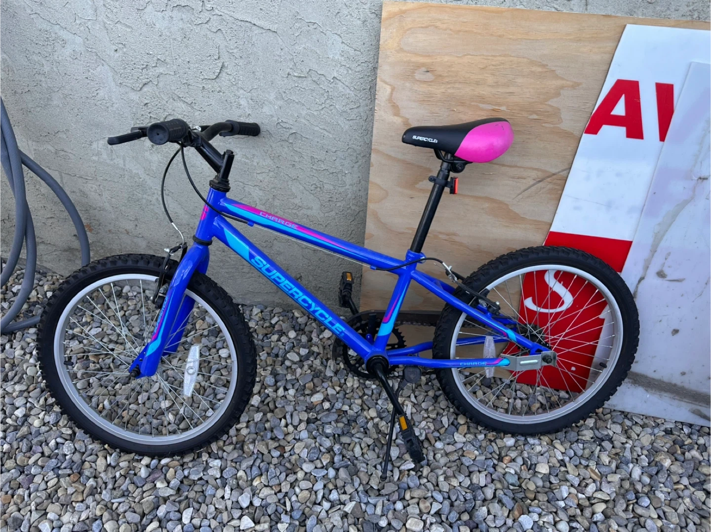 18Selling a Supercycle Charge youth bike in blue with pink accents! It's in great shape and ready for a new rider. Perfect for kids learning to ride or those who want a fun bike to cruise around on