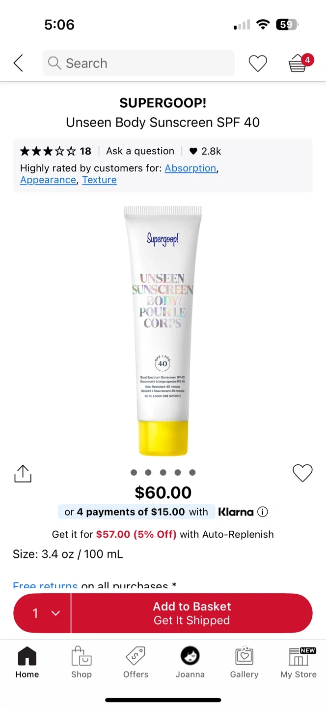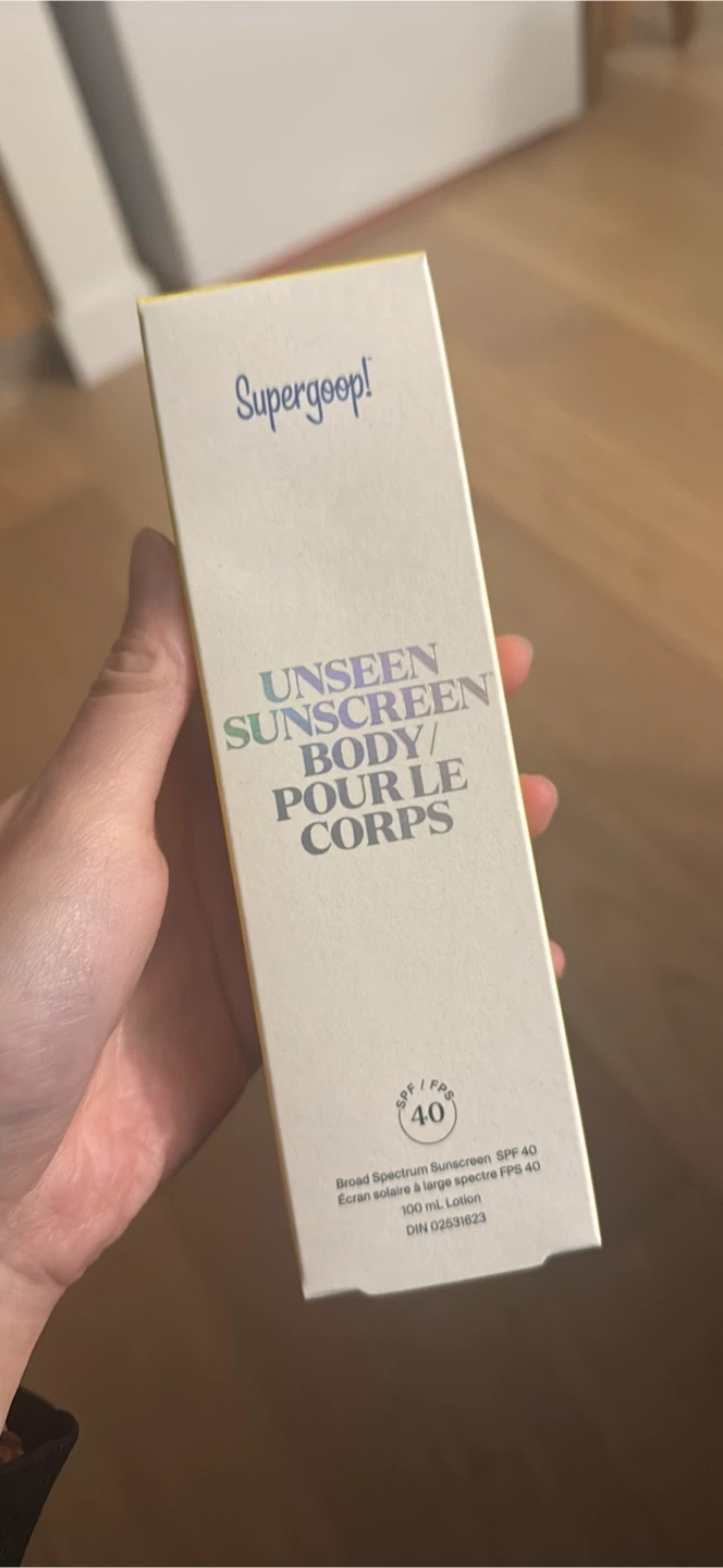 Selling a tube of Supergoop! Unseen Body Sunscreen with SPF 40. It's a broad spectrum sunscreen that's great for daily use. The size is 3.4 oz / 100 mL. Expiry date is June 2026