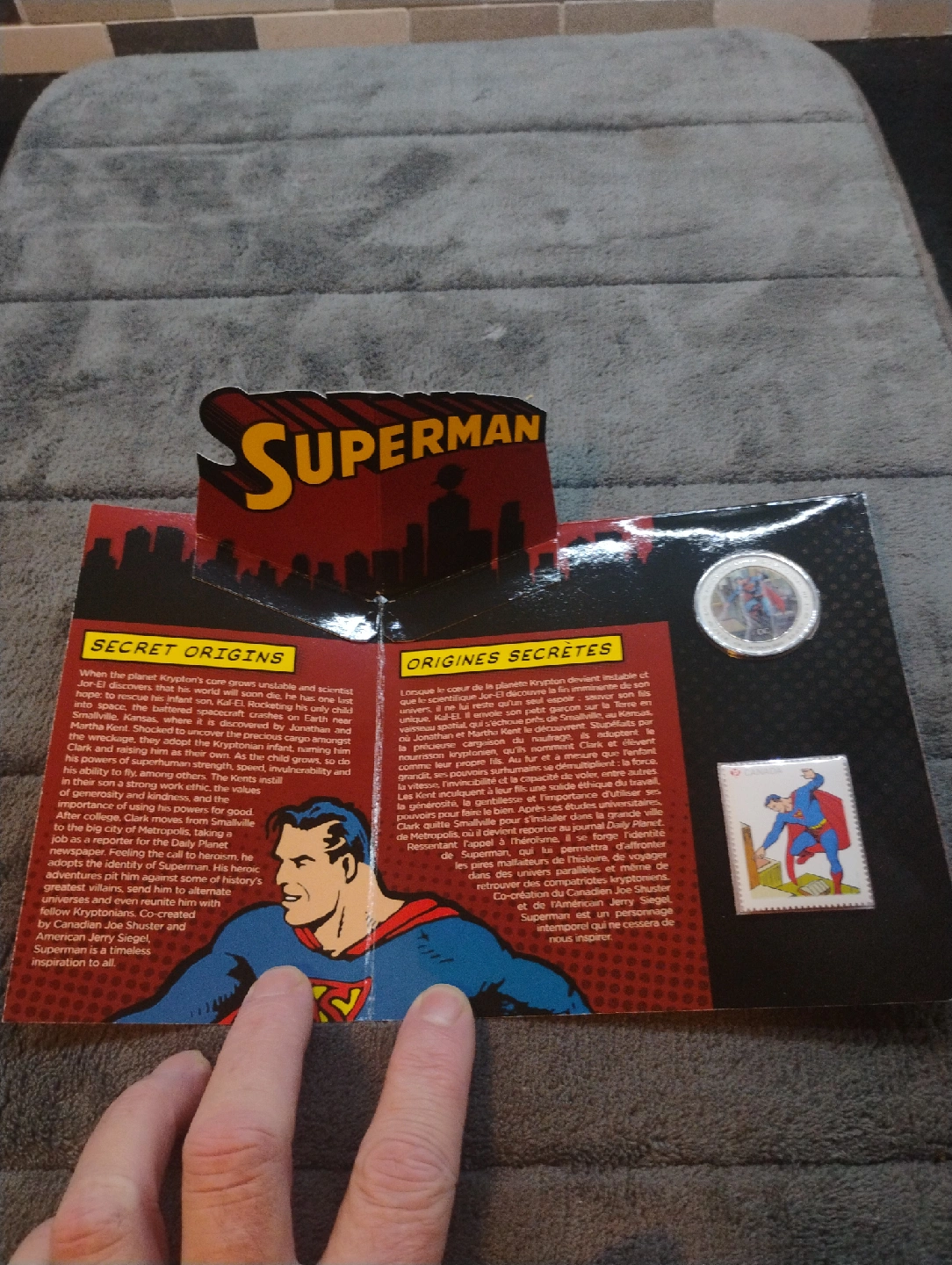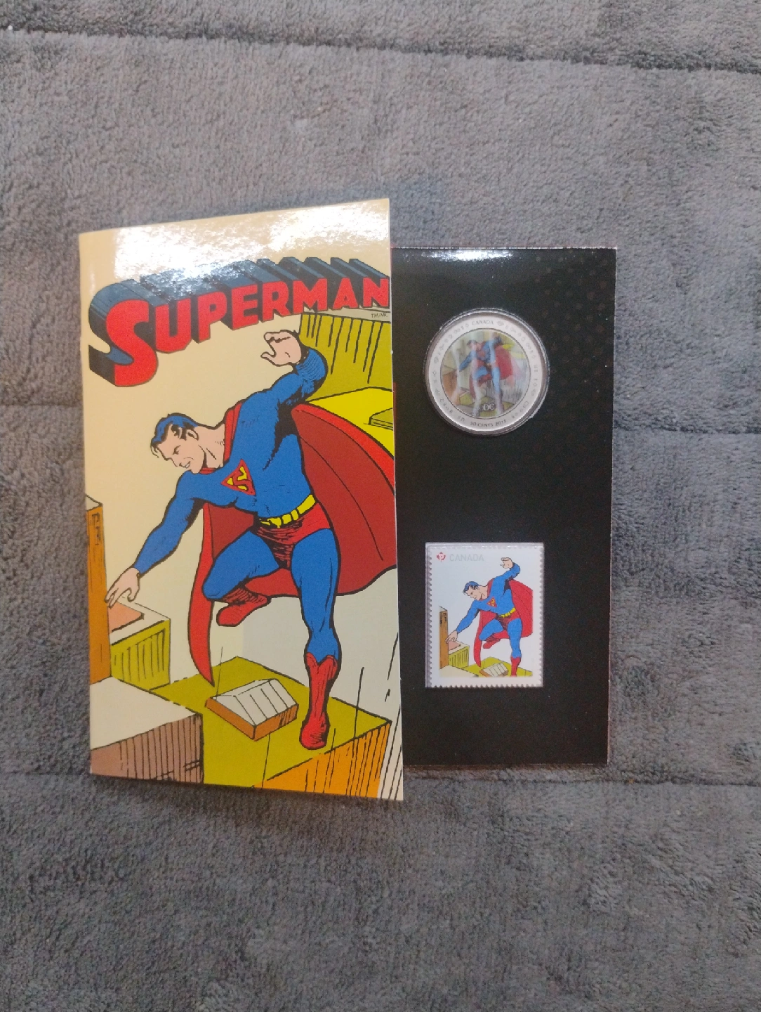 104Selling a commemorative Superman coin and stamp set from the Royal Canadian Mint! It's a neat collectible for any Superman fan or coin collector. The set includes a coin and a stamp featuring Superman, all in excellent condition. Comes in the original packaging.