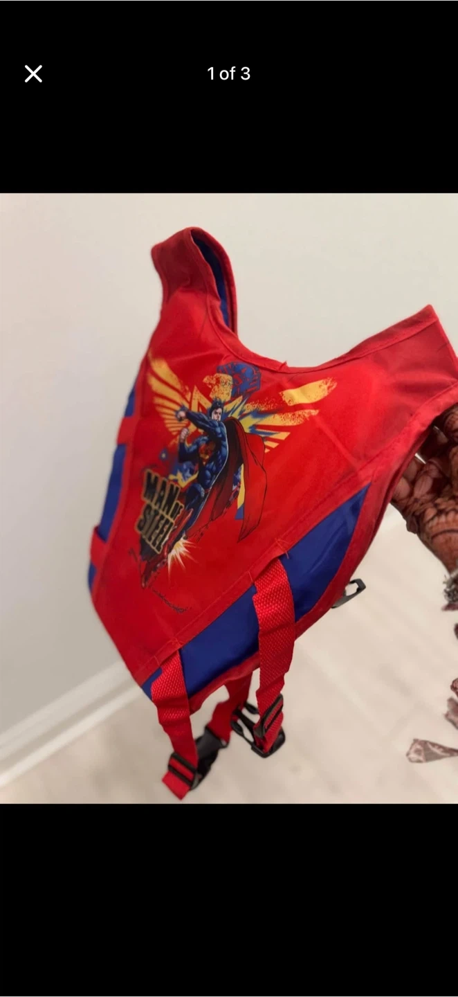 15Get your little one ready for the pool with this Superman Man of Steel swimming aid vest! It's in great shape and ready for a new home. The vest is a size M and features a fun Superman design. Perfect for helping kids learn to swim safely and confidently