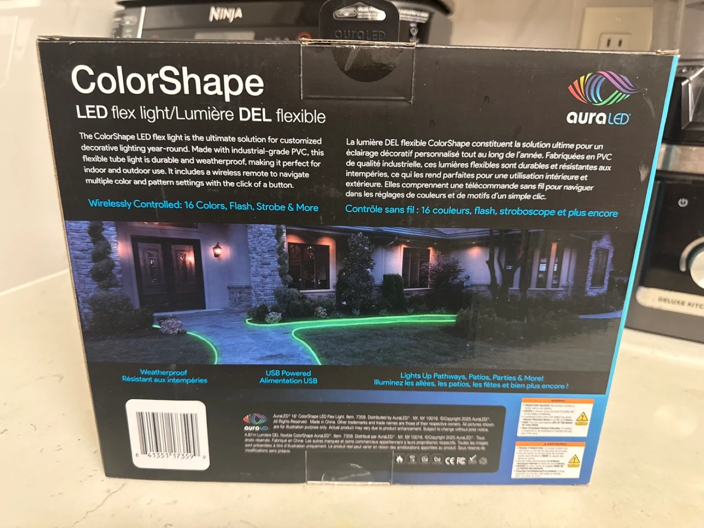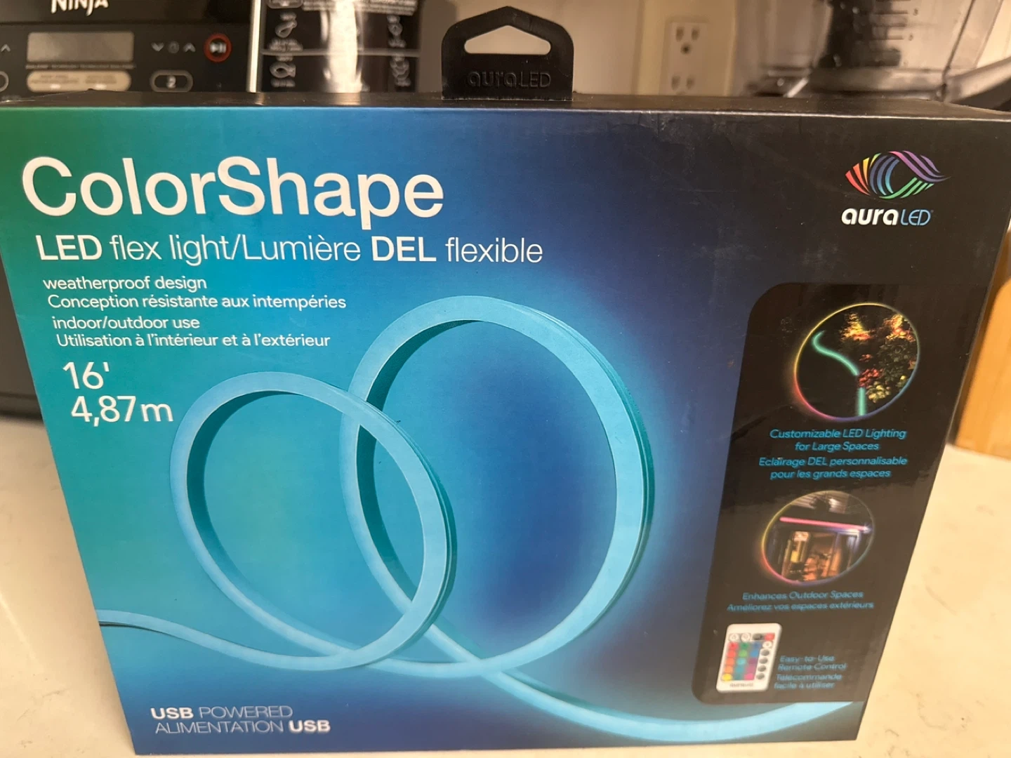 This AuraLED ColorShape LED flex light is waterproof and designed for indoor/outdoor use. It's USB powered and comes with a wireless remote to control 16 colours, flash, strobe, and more. Customizable lighting for large spaces!
