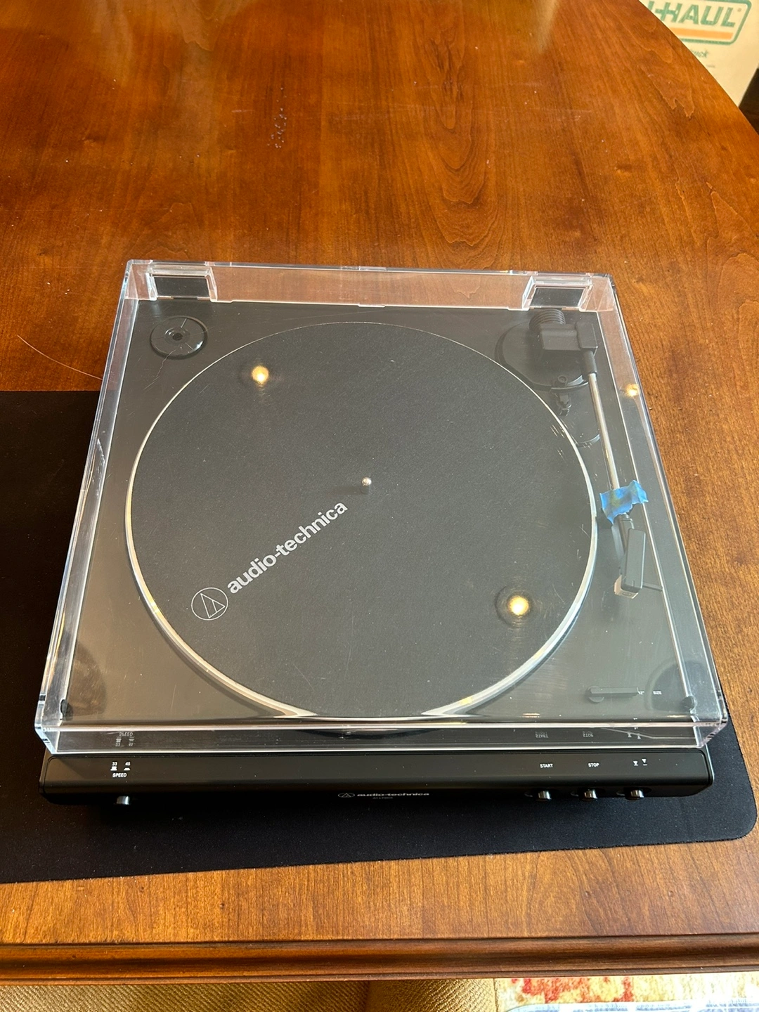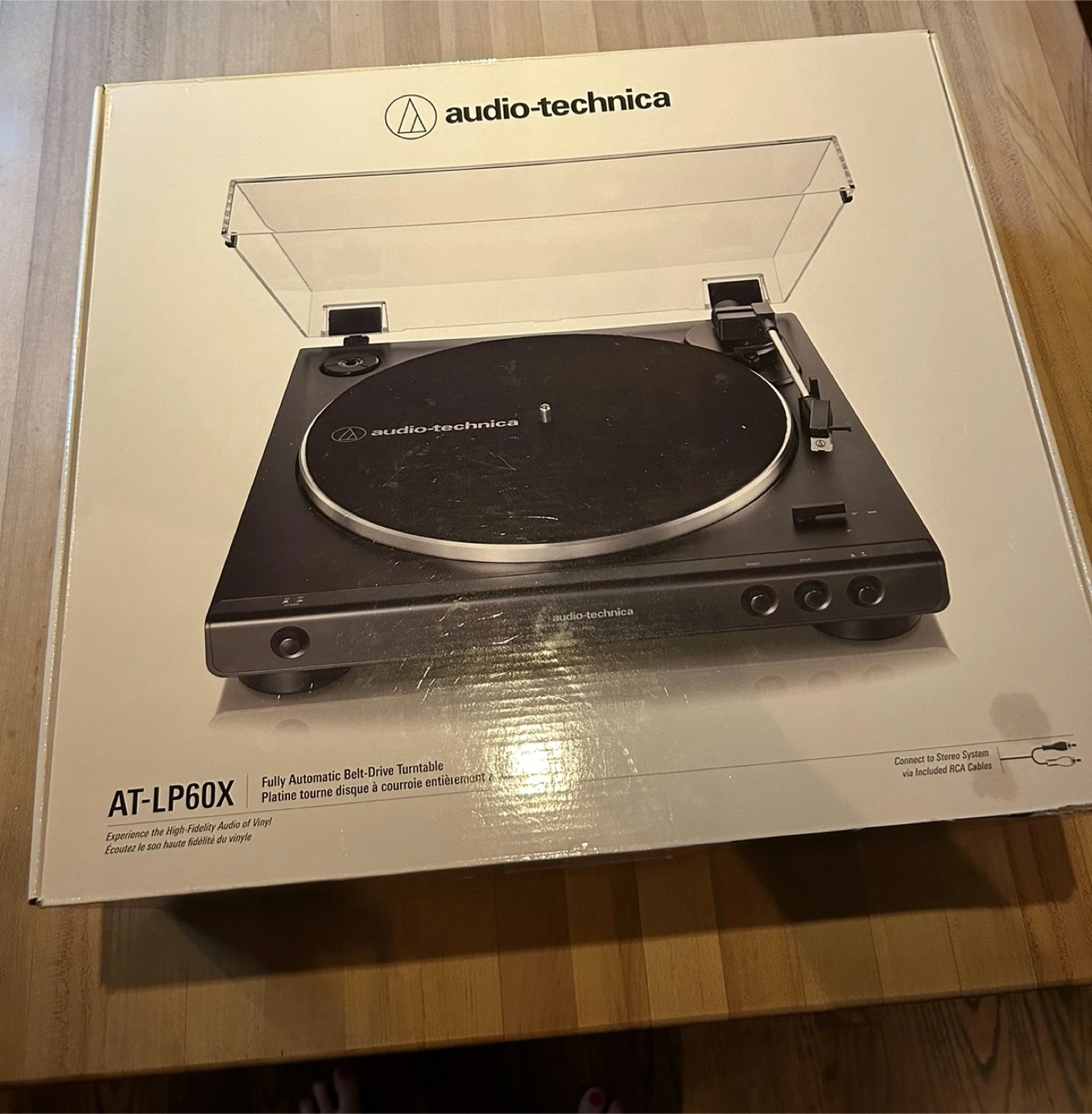 Selling an Audio-Technica AT-LP60X fully automatic belt-drive turntable. It's in very good condition and comes with all original components and accessories, including the RCA cables and instructions. Connects easily to any stereo system for a great vinyl listening experience. Box included! Works well.