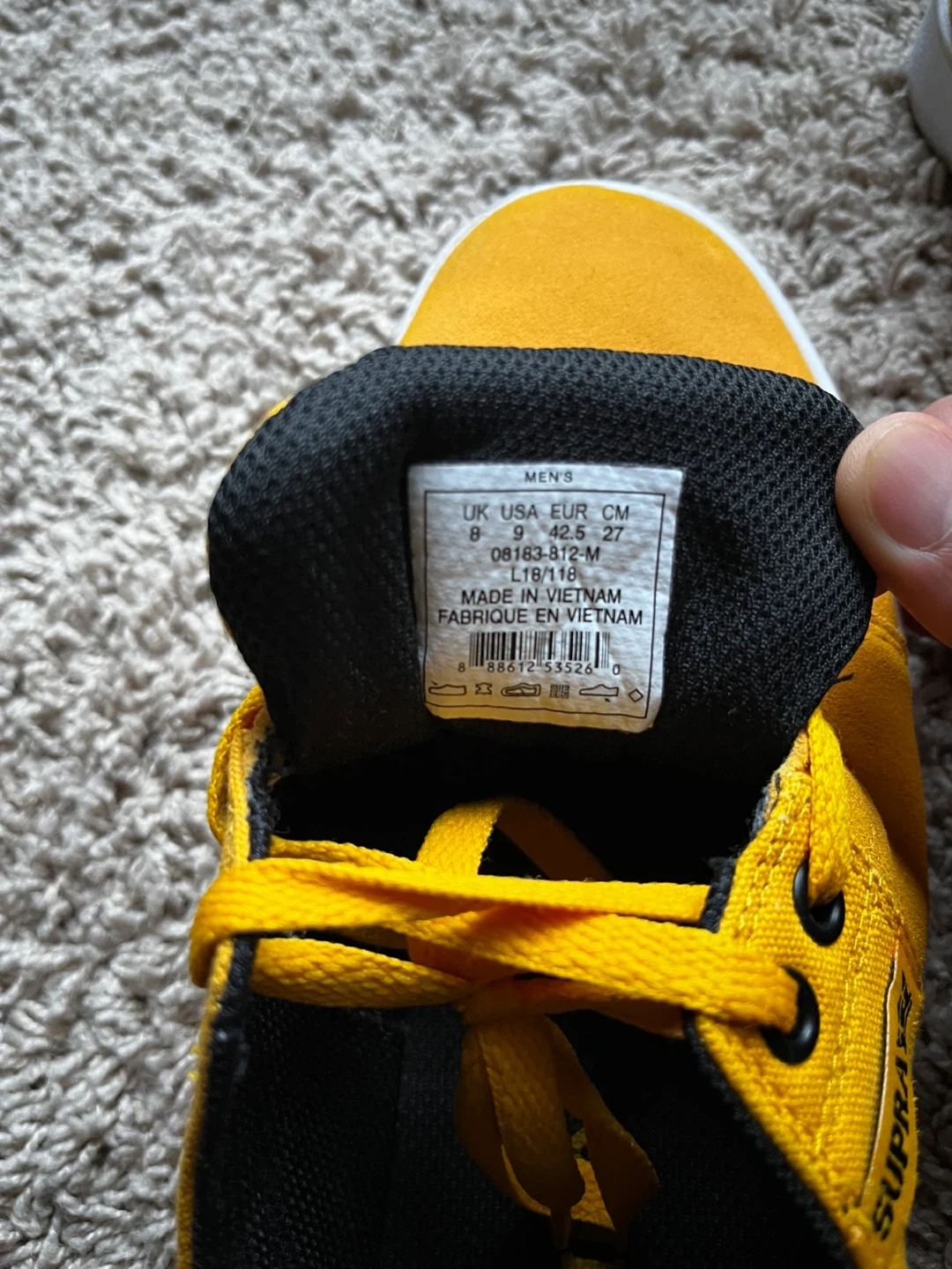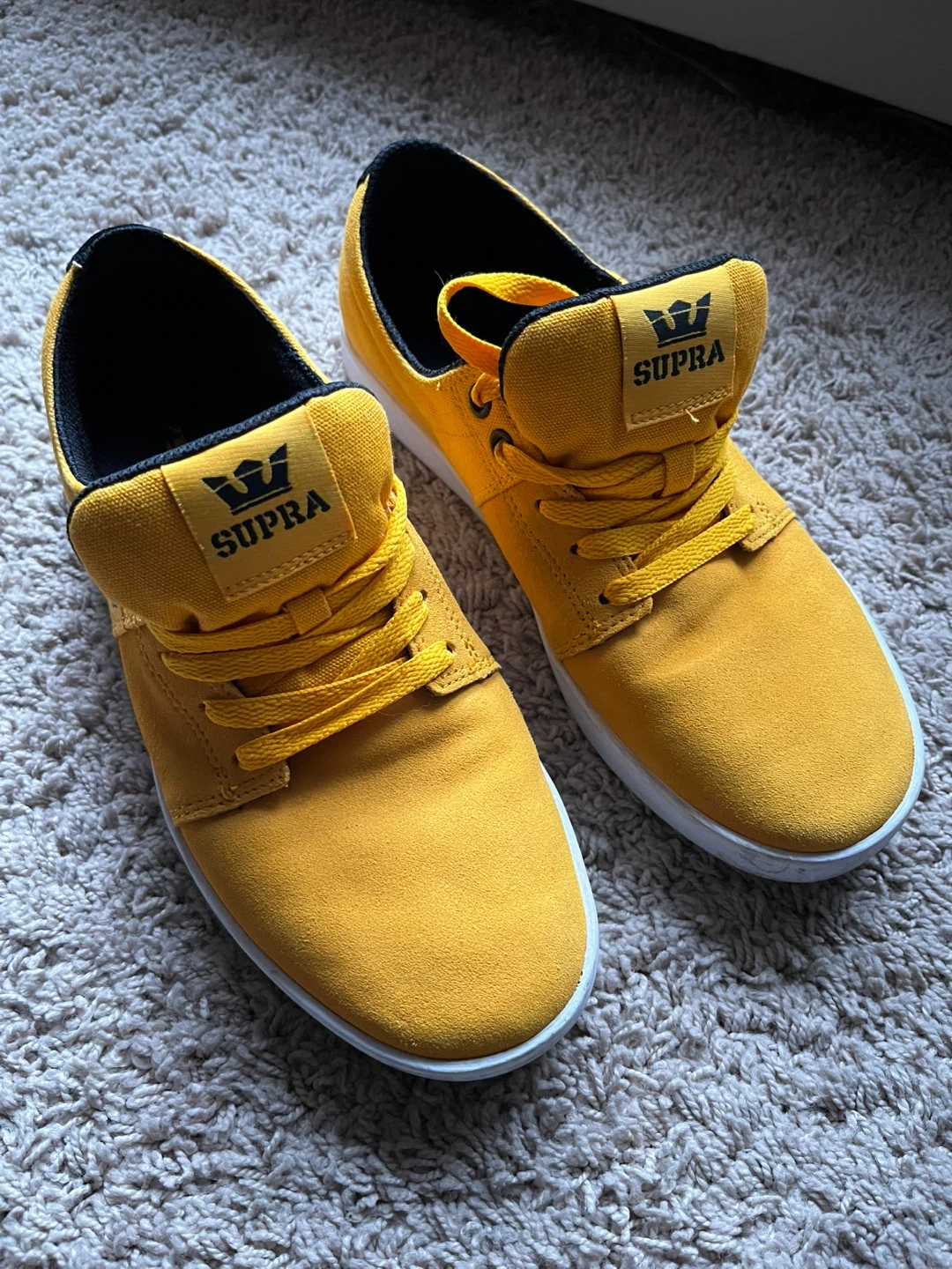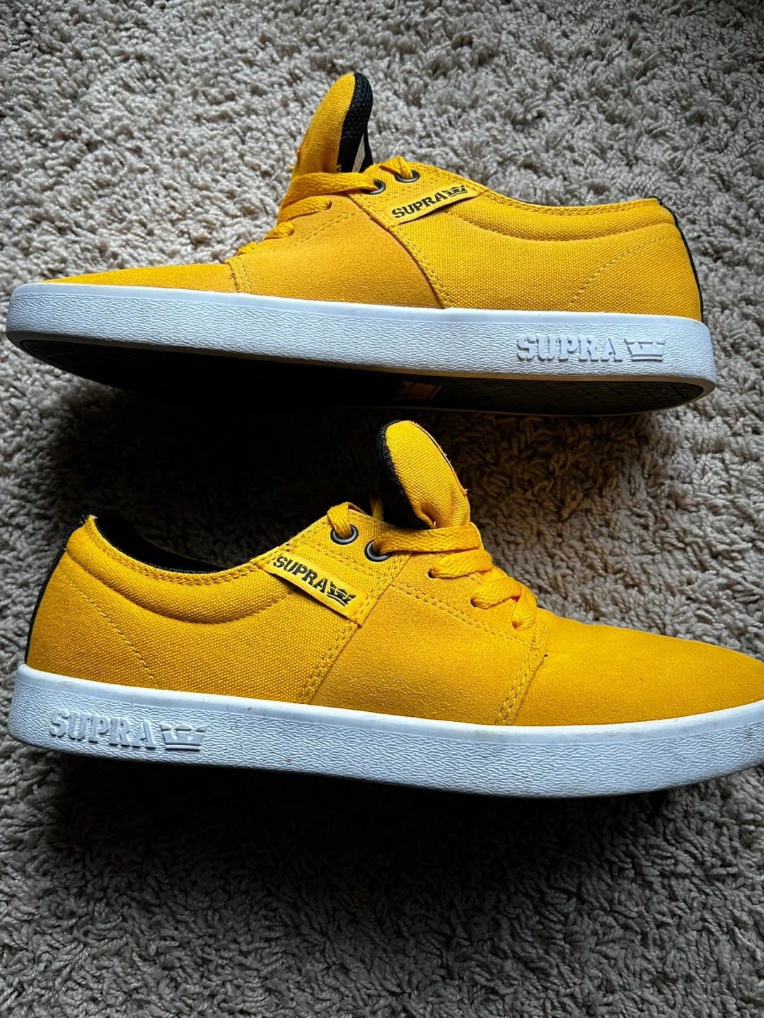 15Selling a pair of Supra sneakers in a vibrant yellow canvas! They're in great shape and ready for a new home. The size is US 9.