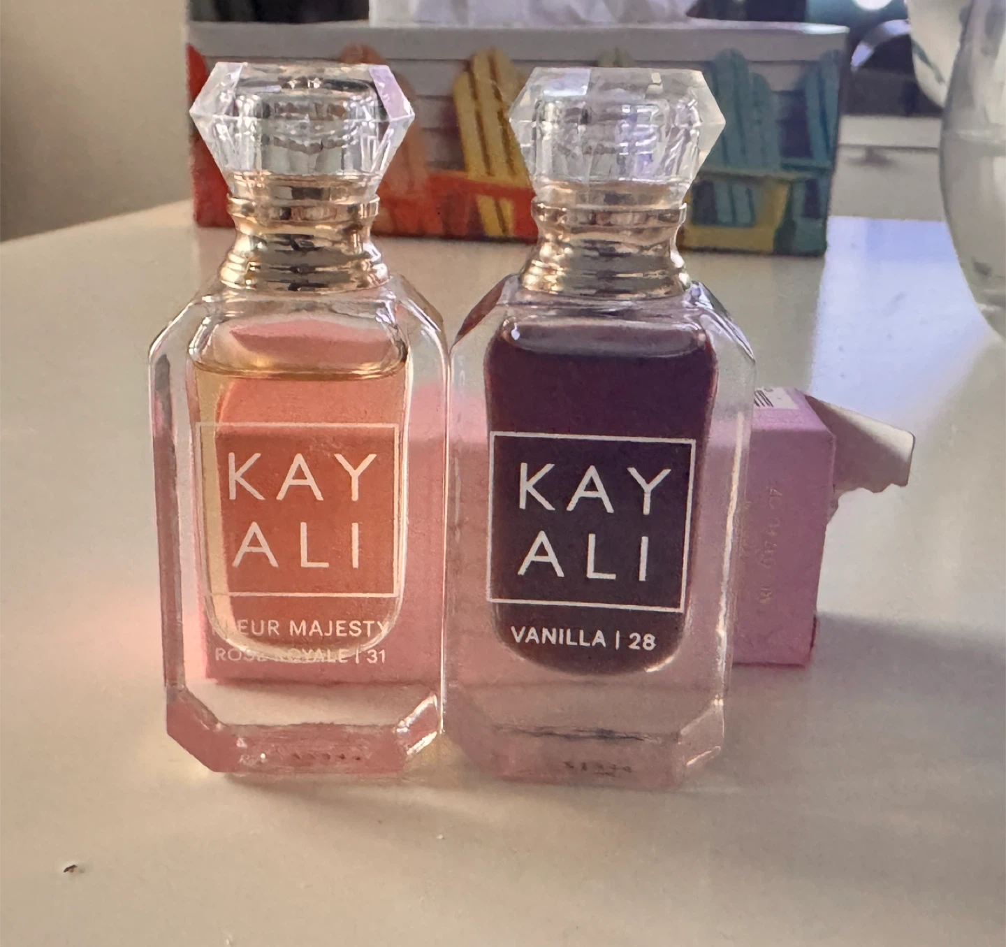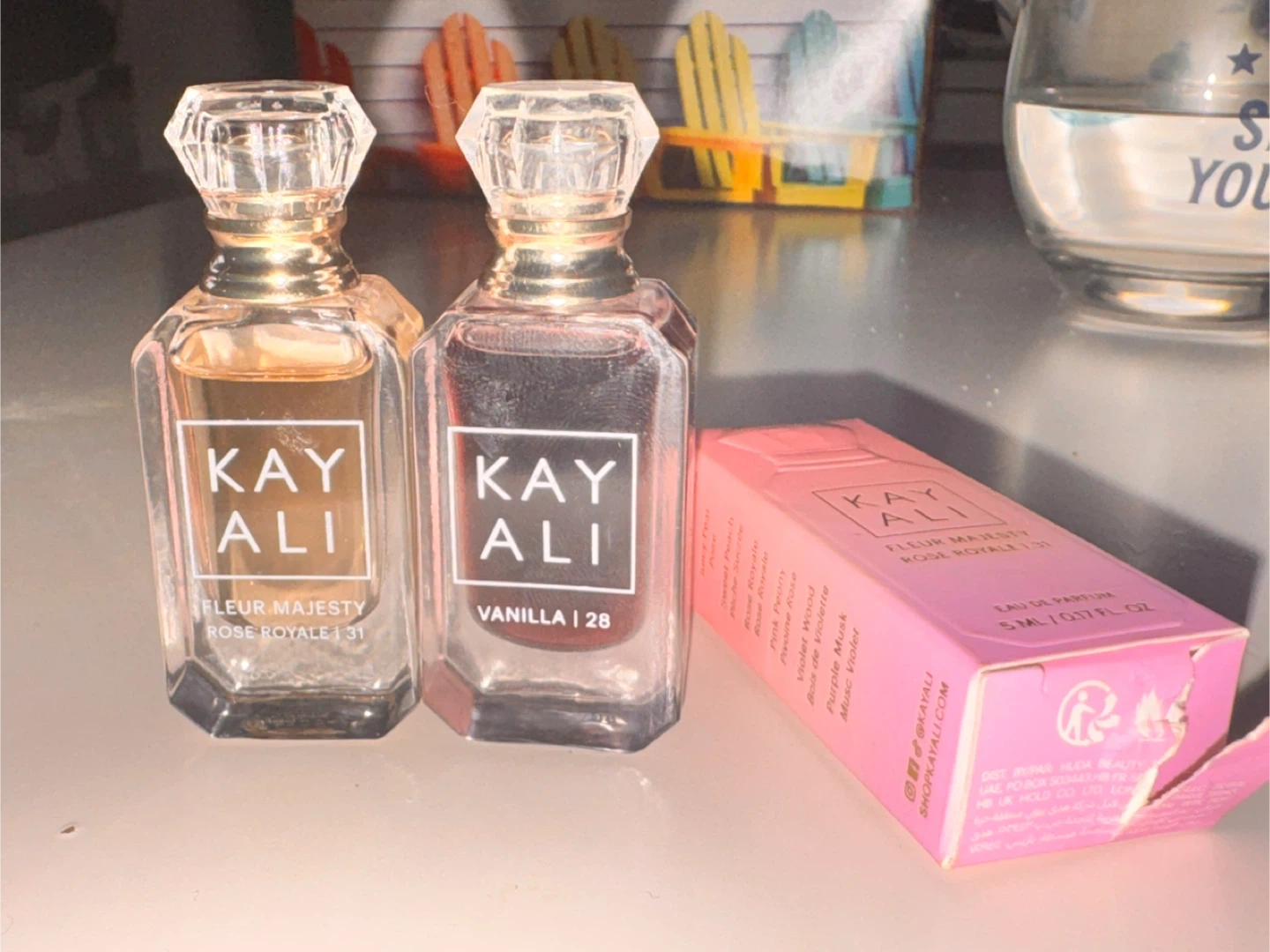 This is a set of two Kayali mini perfumes: Fleur Majesty Rose Royale | 31 (which one i used twice) and Vanilla | 28. (never used ) Each bottle contains 5 ml or 0.17 fl. oz. of eau de parfum. They're great for travel or trying out popular scents!